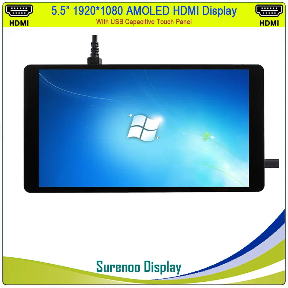 5,5 дюймовый 1920*1080 AMOLED OLED HDMI совместимый TFT ЖК-модуль экран дисплей Minitor USB емкостная сенсорная панель Raspberry Pi