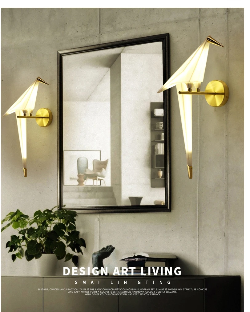 Nordic aisle прикроватный настенный светильник для дома Креативный дизайн Украшение Стены Бумажный светильник кран бра птица светодиодный настенный светильник