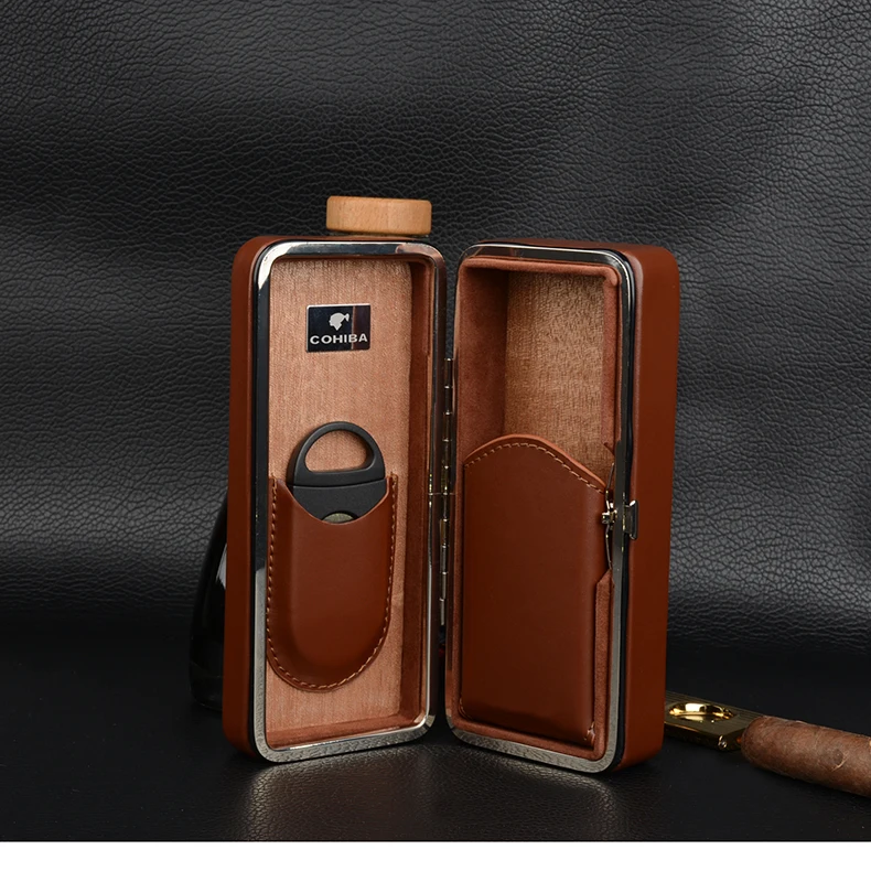 COHIBA Дорожный Чехол для сигар из кедра и дерева, кожаный чехол для сигар с узором змеи, держатель для сигар, мини Humidor с резцом
