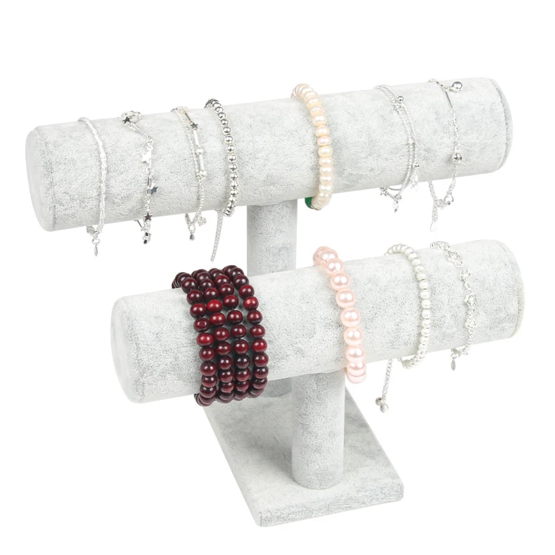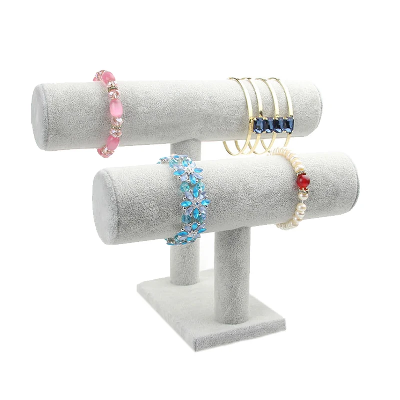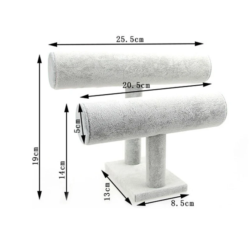 Серый бархатный Браслет Дисплей 2 слоя цепи часы t-бар стеллаж для хранения ювелирных изделий стенд Органайзер жесткий держатель