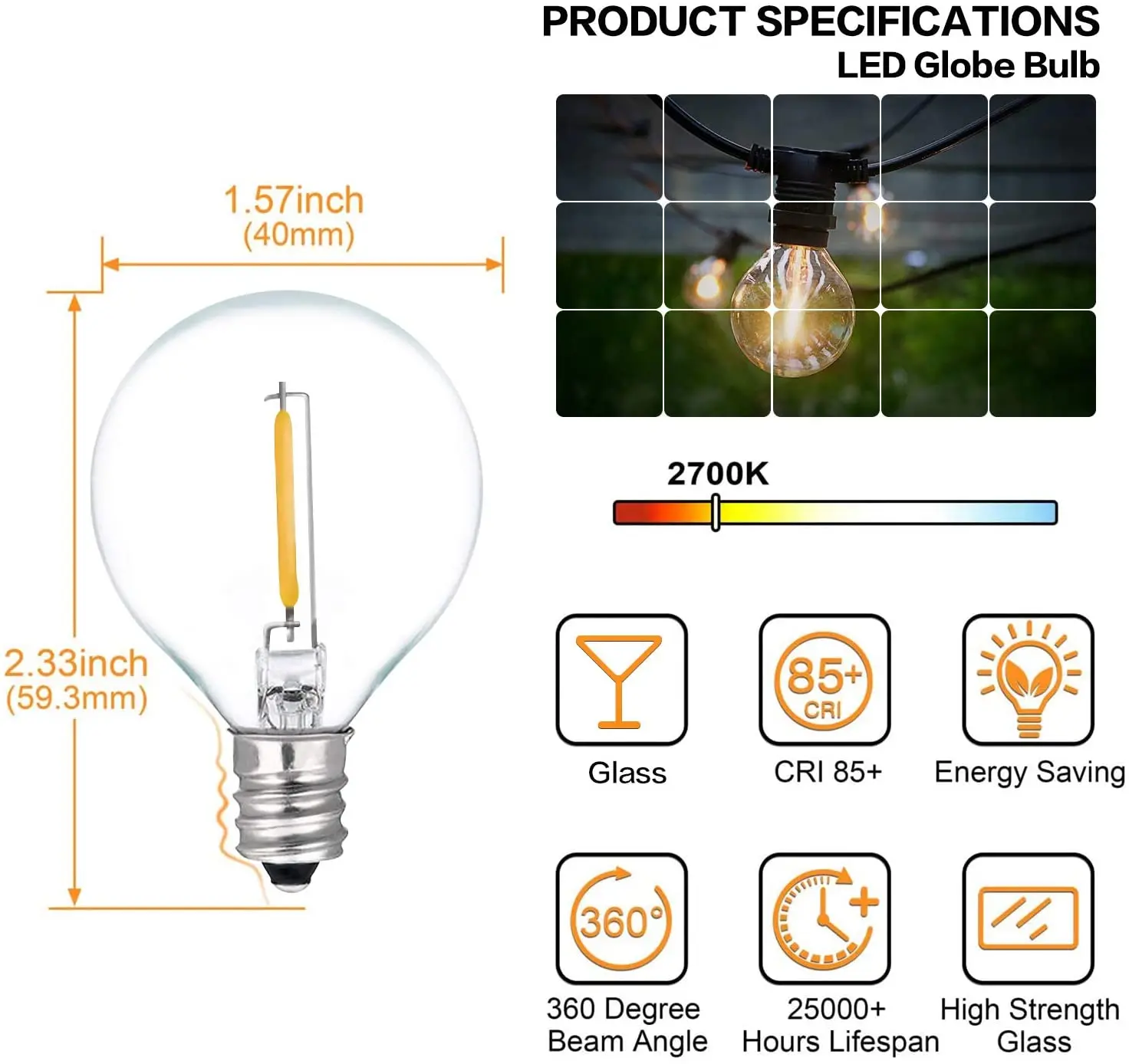25 шт. G40 1 Вт Светодиодный строка Замена огней лампочки E12 220 V 110 V теплый белый 2700 K светодиодный лампы заменить G40 5 W 7 W лампы накаливания