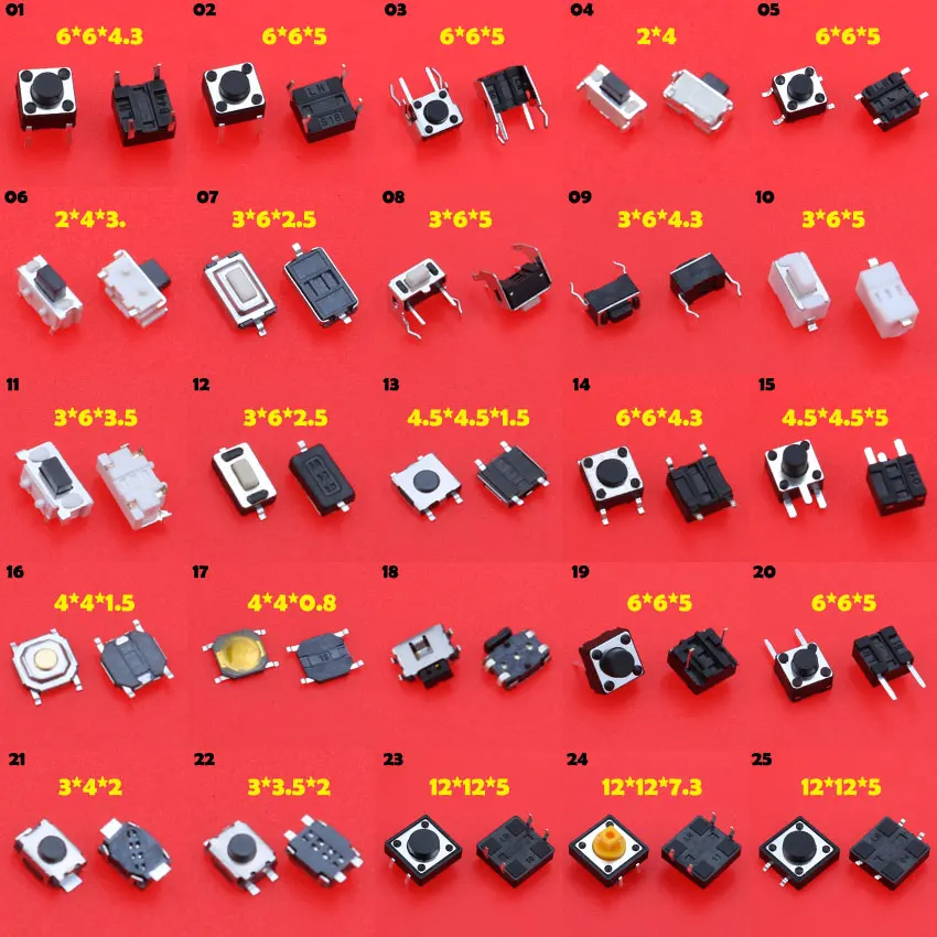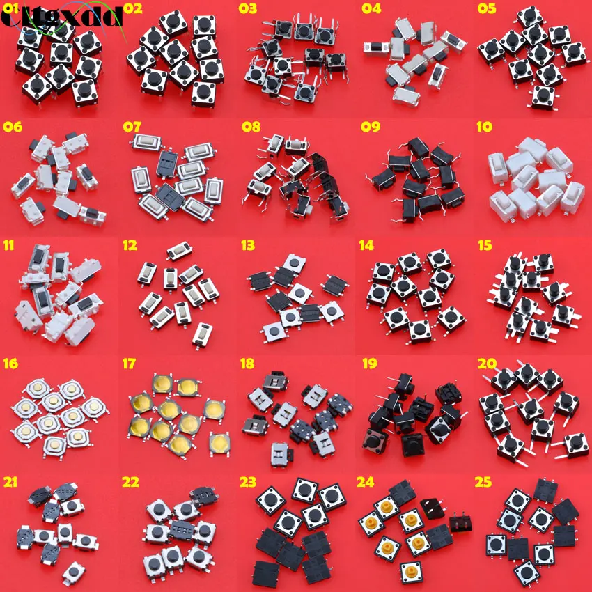 Cltgxdd 25 моделей 250 шт Микро Кнопочный тактильный переключатель сброс мини переключатель листьев 2pin 4pin SMD DIP 2*4 3*6 4*4 6*6