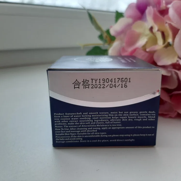 МОЙ ПРОФИЛЬ: https://a.aliexpress.com/_AM3EmD Один из лучших увлажняющих кремов, хороший аналог дорогим средствам, ещё и антивозрастной! В Украину пришёл через три недели, упакован в пупырышки. Запаян в слюду. Сроки хорошие. Содержит муцин улитки, гиалуроновую кислоту и экстракт чайного дерева. Полный состав на фото. Запах приятный. Текстура немного вязкая, но наносится равномерно. Быстро впитывается. После применения кожа увлажнённая и напитанная. Плюс он идёт немного отбеливающий.