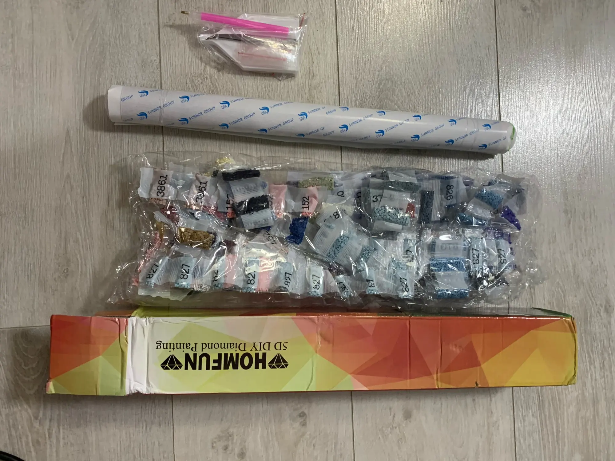 Заказ был сделан вечером..к обеду следующего дня продавец уже отправил посылку..ОООО..2 недели и картина у меня (Волгоград).Упаковано всё хорошо, ничего не помялось..в фикс прайсе куплены контейнеры для удобства(каждый 77рублей)..уже выкладываю..по завершению выложу результат