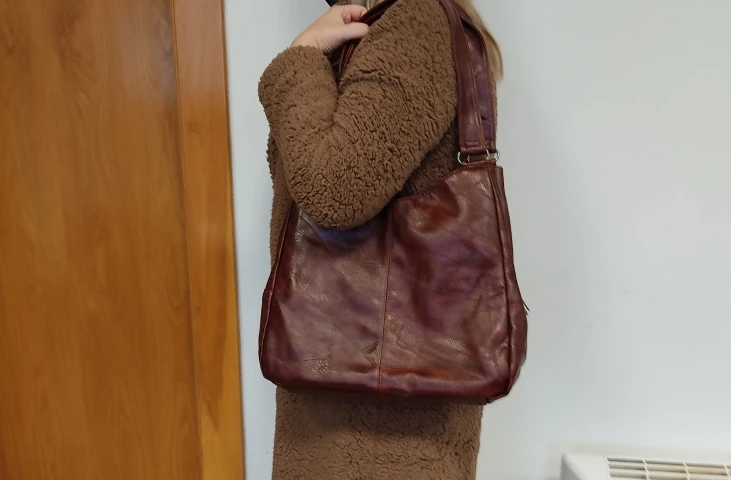 Цвет более бордовый, красный, коричневый, но также хорошая сумка