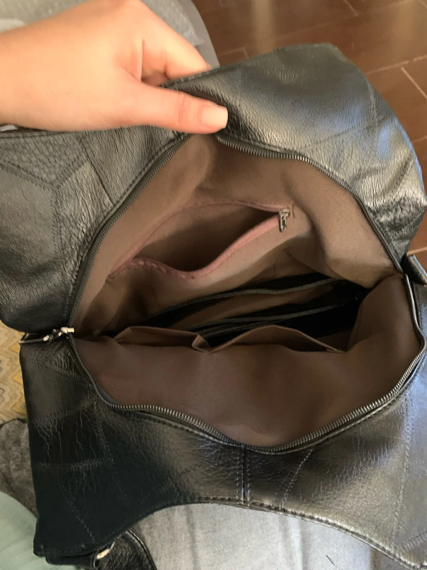 Ожидала большего. Внутри мало карманов и они очень маленькие. Замок не удобно закрывать на ходу, потому что не прямой а вшит полукругом. Из-за этого объем сумки становится значительно меньше - не практично. Я удивляюсь отзывам о вместительности сумки. Снаружи она больше, чем внутри. На сезон сойдёт.