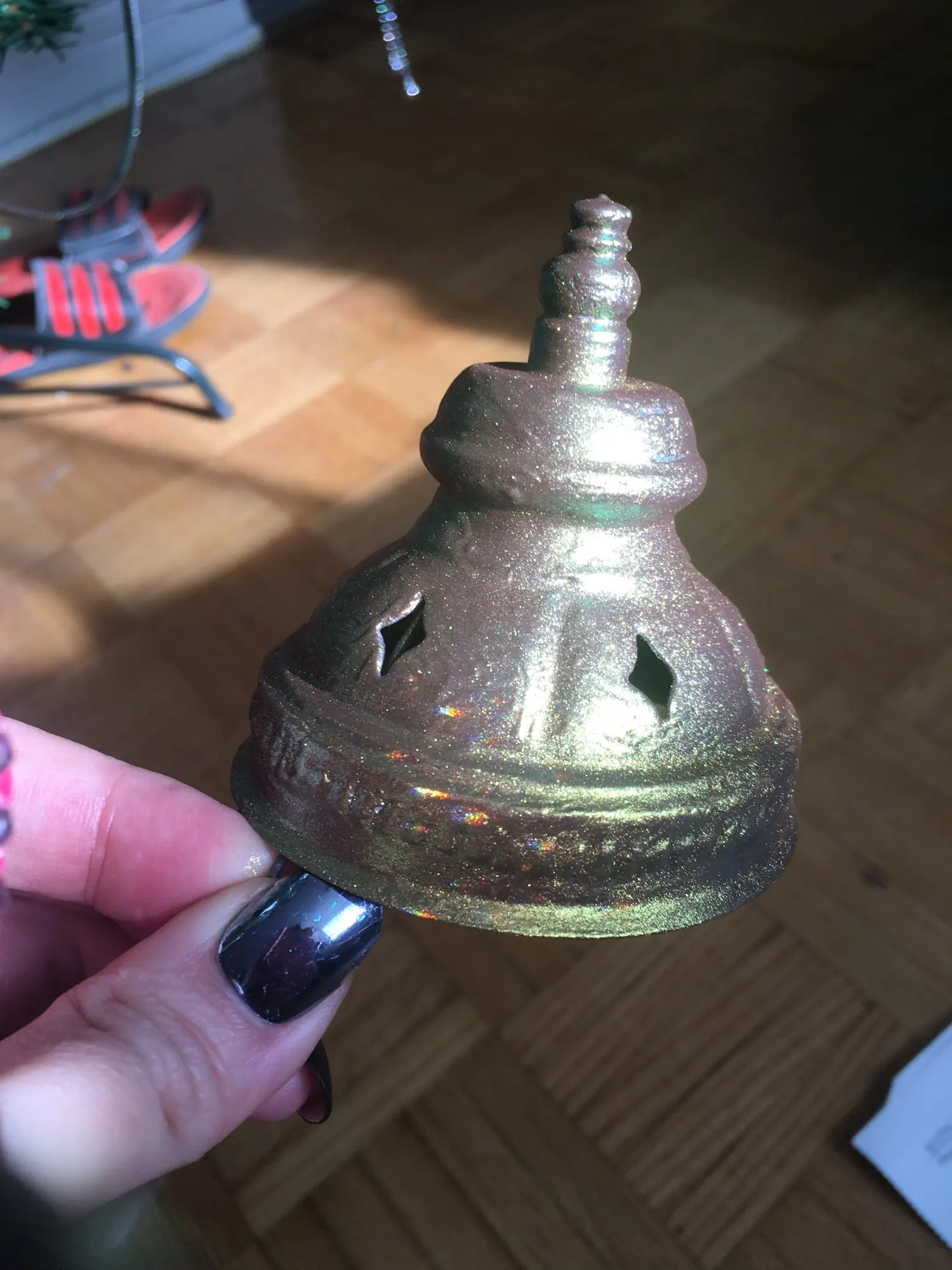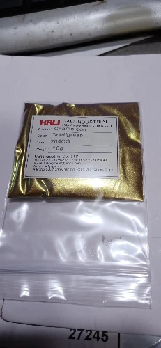По совету подруги-реставратора не размешивала с клеем, а посыпала сверху, на клей.. получилось очень даже красиво.. потом обтрусила.. зелёный эффект не сильно выражен, больше золото.. красиво... спасибо продавцу