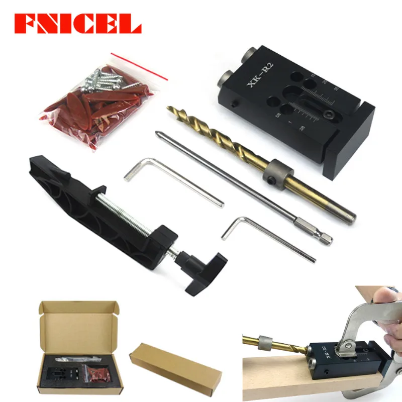 Карман отверстие джиг комплект Системы черного цвета для деревообработки и столярных работ, состоящий из шаблона для отверстий под косой + ступенчатая Буровая головка бура под косой шуруп впотай, набор инструментов с коробкой