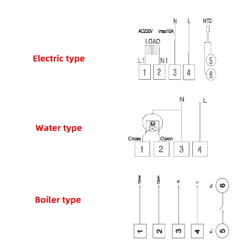 -Емкость контакта: 16A (электрический тип); 3A (тип воды/Тип бойлера)