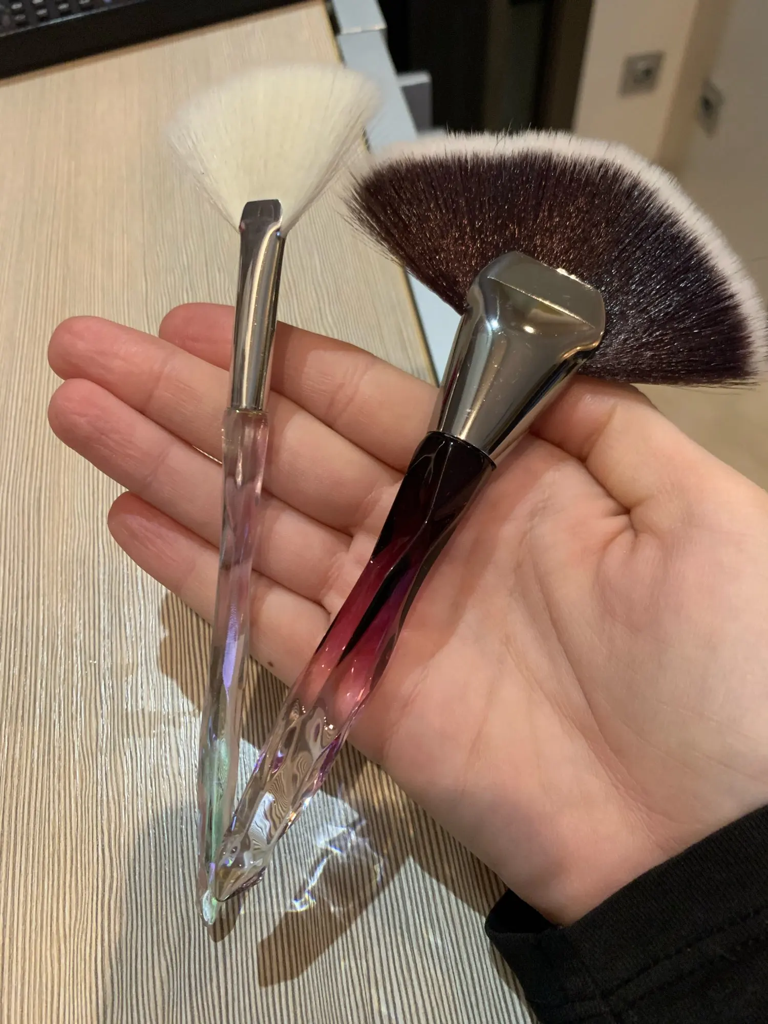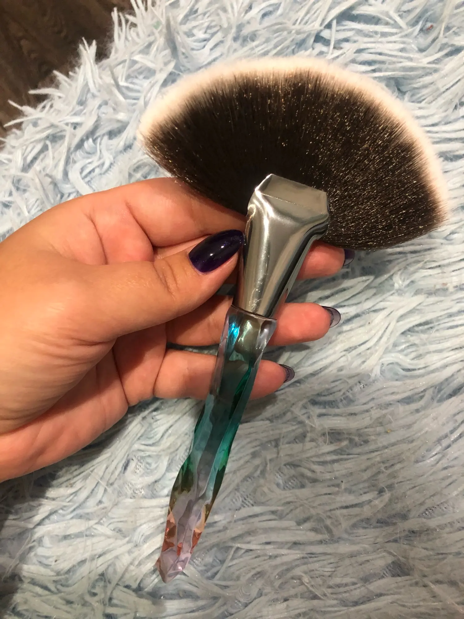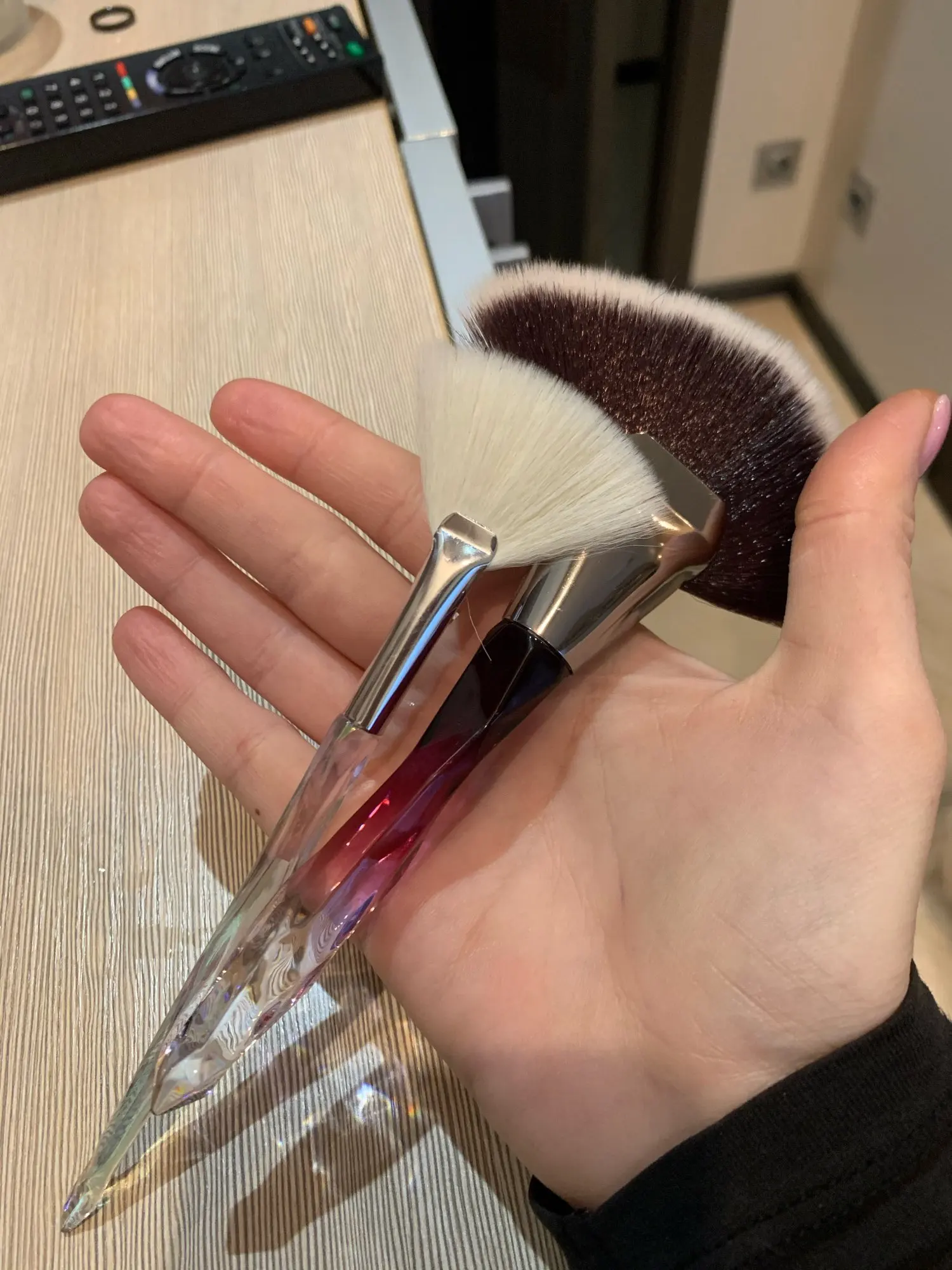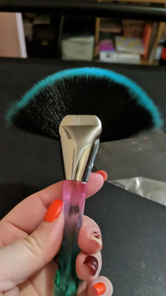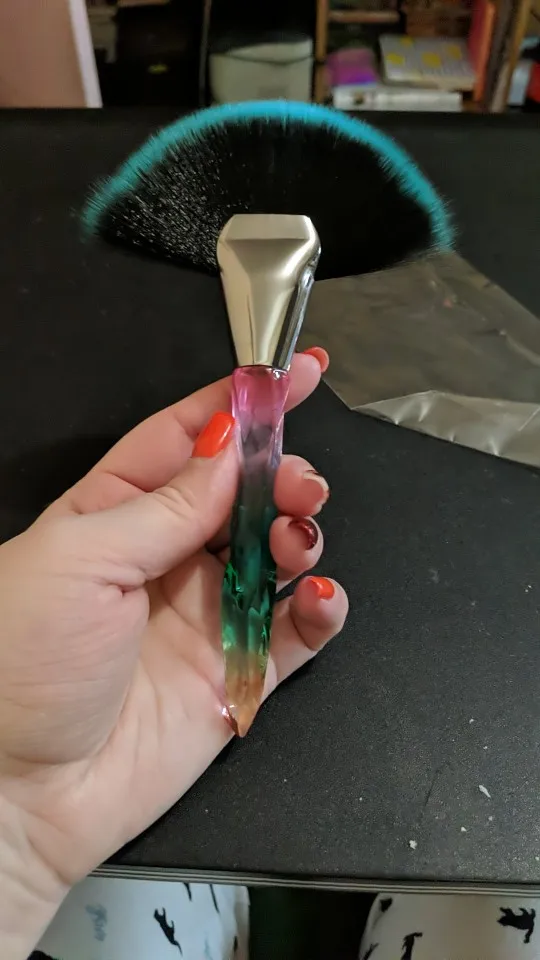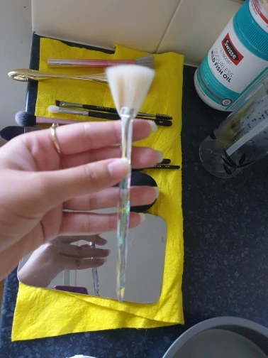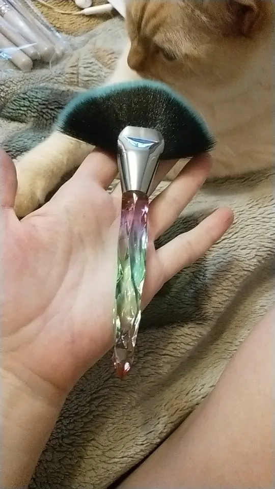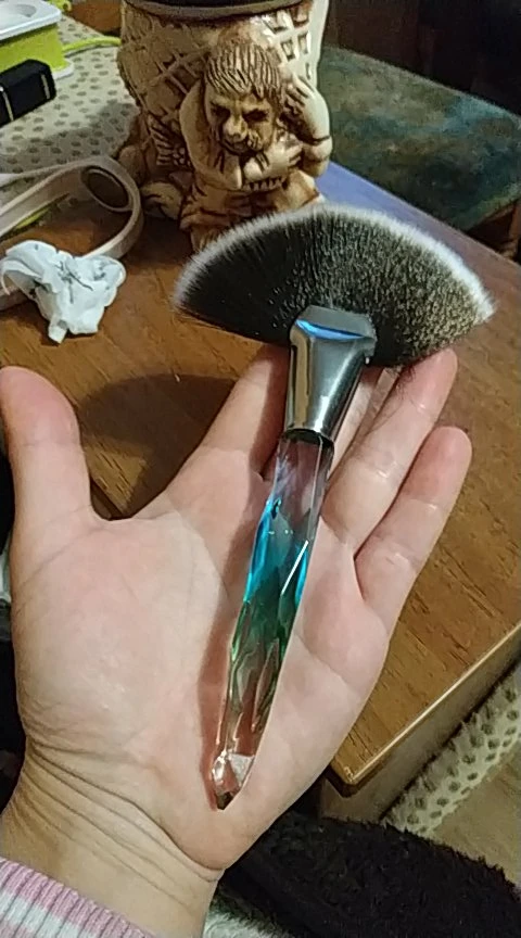 Кисточка очень красивая выглядит безумно эстетично, особенно на солнце. Плотно набита, но единственное, её нужно немного расправить для того, что бы ворс шёл ровно, не пугайтесь сразу если увидите что она не ровная. В руке лежит удобно, немного увесистая, в хорошем смысле. Единственное, доставка была очень долгой (3 месяца) и в заказах уже месяц висела что я забрала посылку. На все или вопросы продавец вежливо ответил и попросил немного терпения, хотя я уже и не надеялась