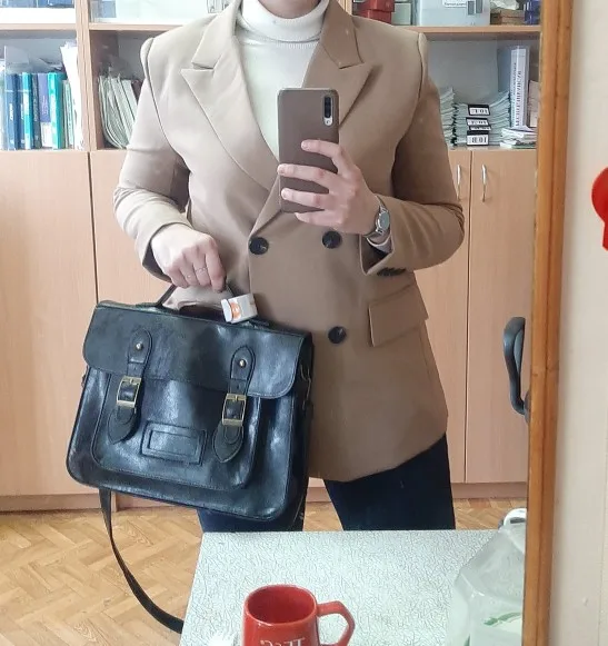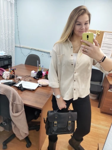 Вполне довольна, вот только цвет расстроил. Думала в жизни будет темнее, а он красноватый, нежели, коричневый. Ну короче, очень светлый и сложно сочетать с одеждой, особенно в холодную погоду. Ну, зато качество на высоте. Материал приятный, смотрится красиво и необычно. В городе редко у кого видела такие фасоны сумок. Вмещает парку с а4, застёжки регулируются, поэтому сумка вместительная. До Караганды посылка шла 1,5 месяца.