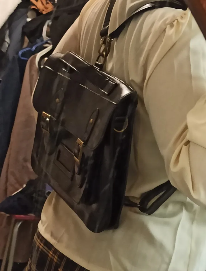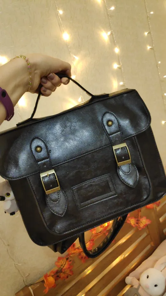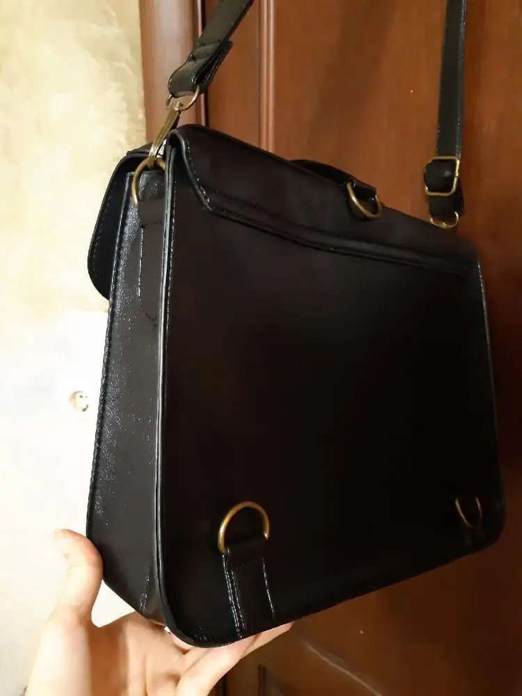 Пришло очень быстро, буквально за две недели до Томска. Упаковано было в пупырчатую пленку и в специальный мешочек. Внутри лежали два ремешка, достаточно длинных (мой рост 170). Можно носить и как рюкзак, что удобнее, но так же и через плечо. Отвалится ли плечо? да. но оно того стоит! Продавец, кстати, в подарок положил милый браслетик. Есть три крепления + были найдены ещё два по бокам. Портфель, на удивление, вместительный. Самое чудесное - учебник английского вмещается. :D Есть маленький карман спереди, в который легко можно вместить книжку. Каких-то либо отсеков сам портфель не имеет. Крепится с помощью штучек, которые на фотографии. Очень удобные, потому что я по началу полностью расстёгивала ремень. Есть небольшой запах, но он довольно быстро выветривается. За небольшую цену, однозначно стоит заказывать! :з