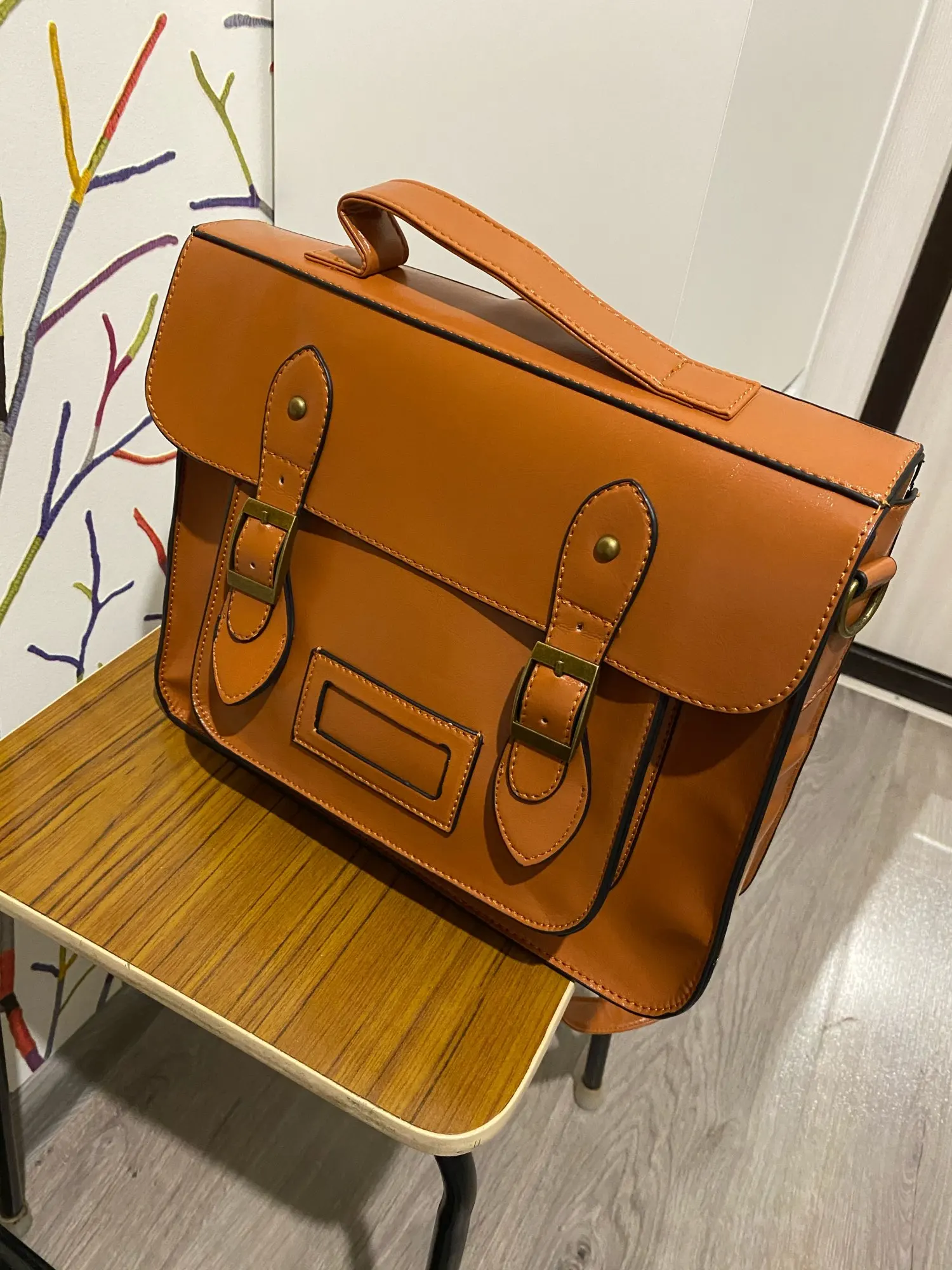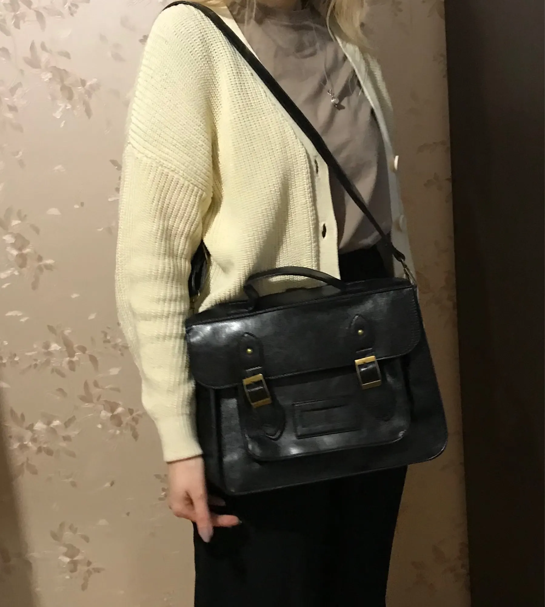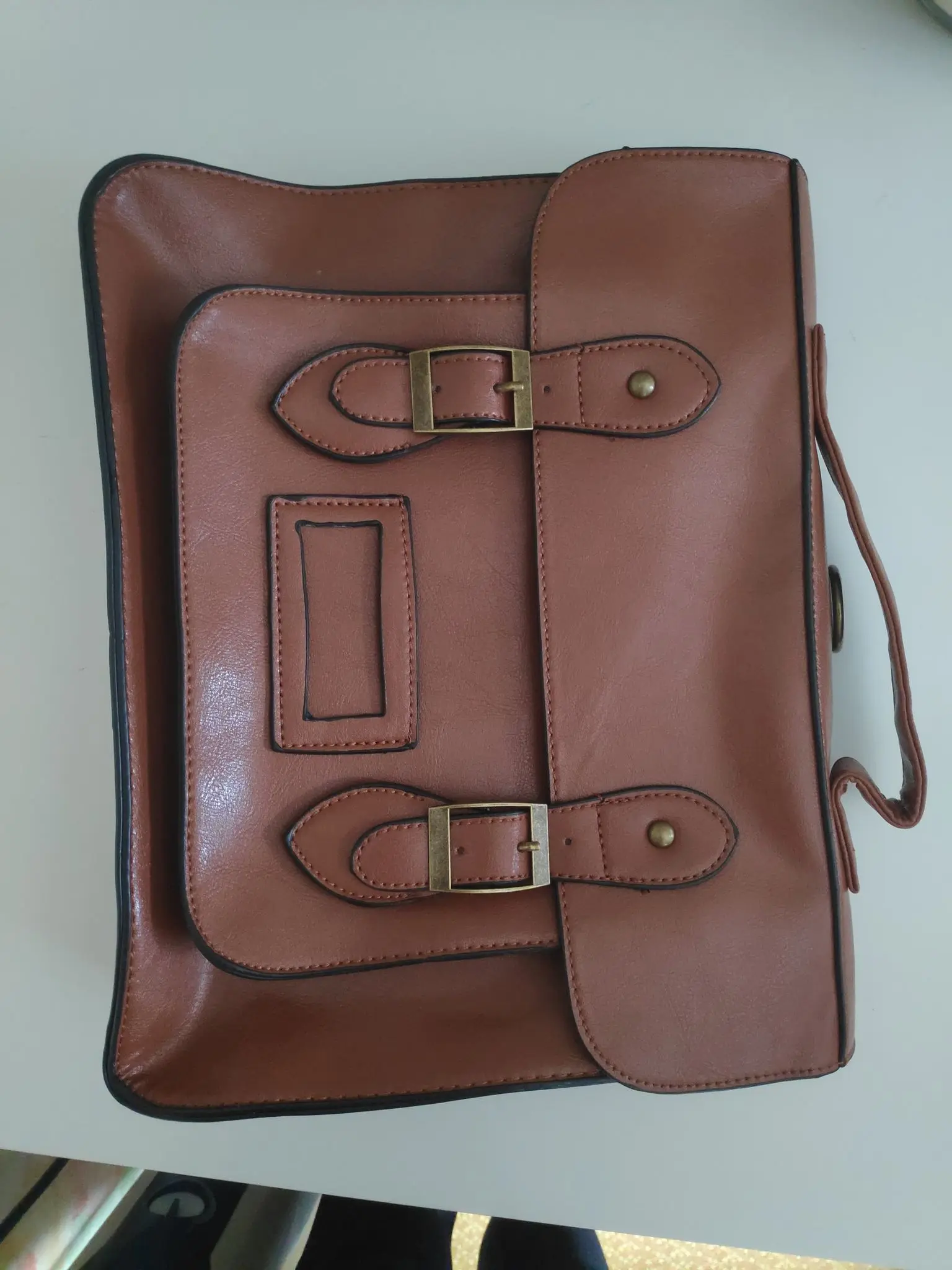 ~~~~~~~~~~~~~~~~~ Шикарнейший портфель!~~~~ Помещается ноутбук Lenovo Yoga 720 (13,3 дюйма), сборники для подготовки к ОГЭ, в общем, А4. Выбрала доставку Dpd в пункт назначения. Довольно шустро, хотя можно было бы и быстрее, чуть менее месяца. К новому году пришёл-уже хорошо!) Запаха не было, но упаковка была не очень надёжна-просто пакетик. Был мятый, пришлось выпрямлять народными методами :з и мнется он постоянно, это минусик. Однако какой же он красивый! Выглядит просто отпадно, винтажно! Закрывается с помощью двух магнитов, не открывается, даже если несу тяжести и при этом бегу :> С ним шли две лямки для носки в качестве рюкзака. Мне очень понравился, заказывайте! ♪~(´ε` )