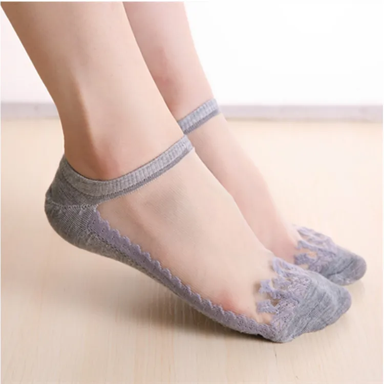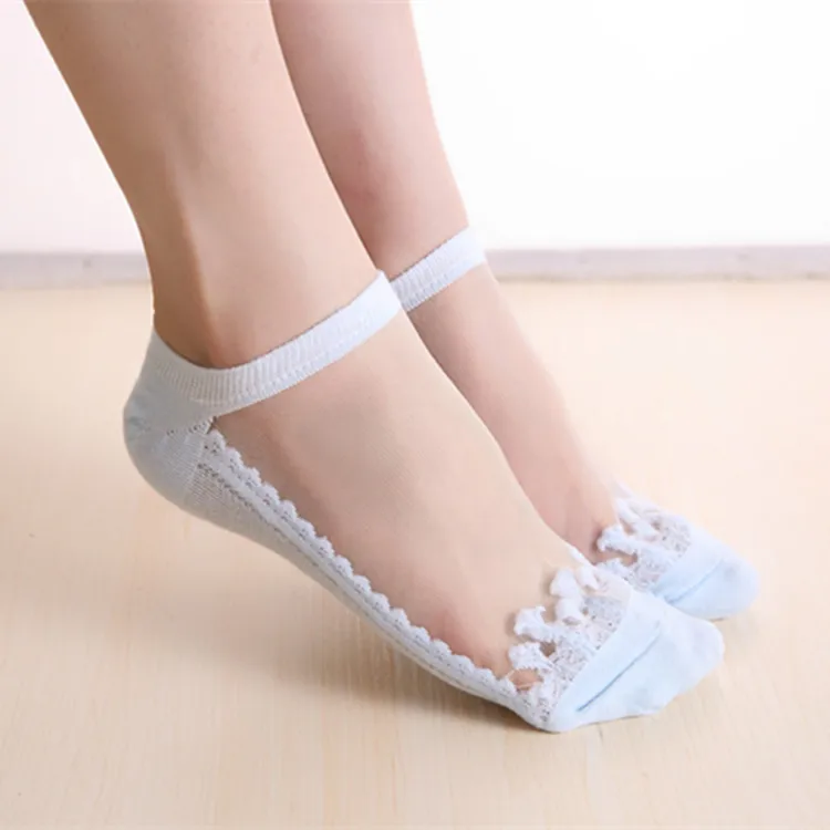 Модные женские кружевные хлопковые шелковые короткие невидимые следки с цветком Sanwood