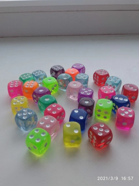 Заказывал 05.12.2020 за 282 рубля. Посылка пришла в Нижний Новгород 20.12.2020. Кубики соответствуют описанию. Ожидал что будут побольше, но оказалось что 14 мм это действительно такие маленькие кубики. Присутствует небольшой брак внутри некоторых кубиков есть пузырьки воздуха, но это несущественно)