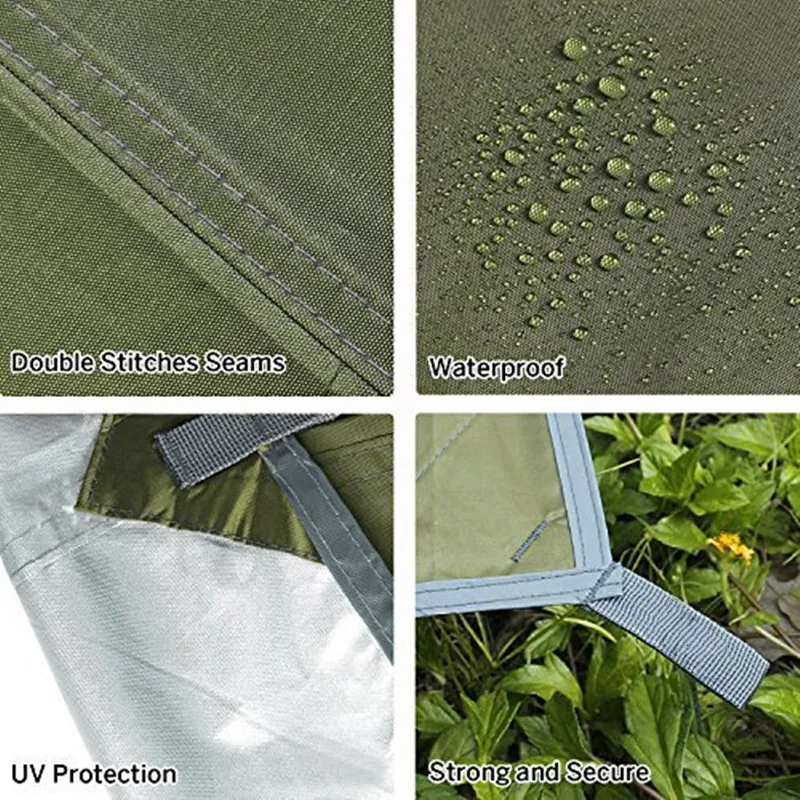 Сушить под дождем: Мы тент брезент Изготовлен из супер прочной ткани 210D rip-stop Oxford, ПУ 3000 мм водонепроницаемый. Он обеспечивает отличную защиту от дождя, внезапных падений, снега и высоких ветров.