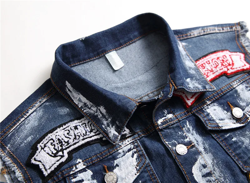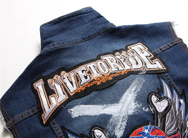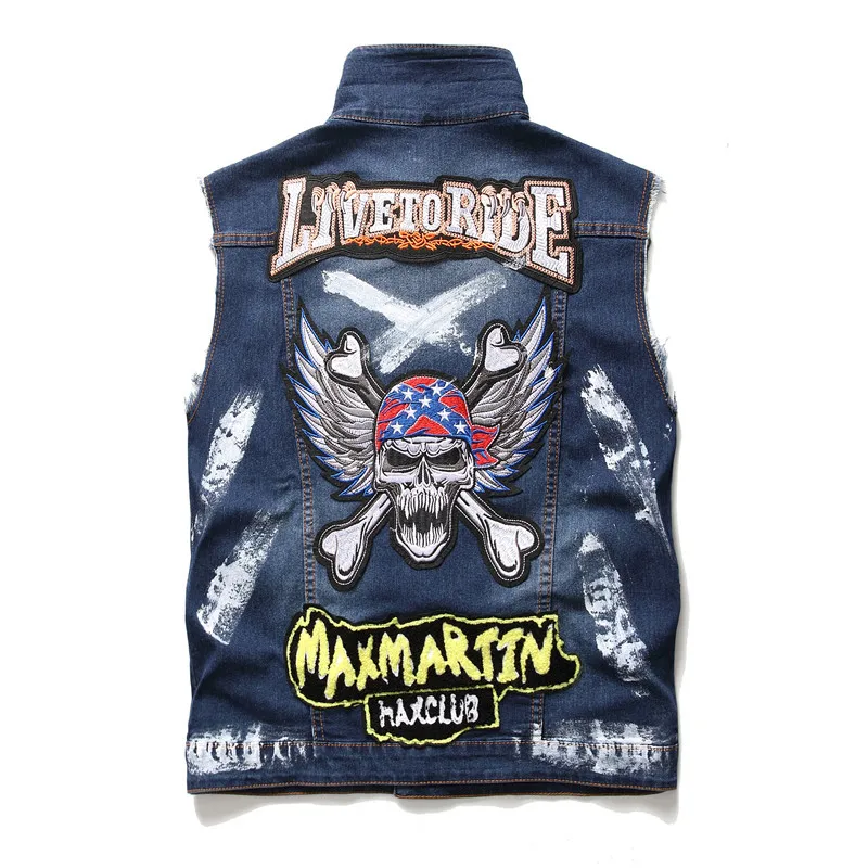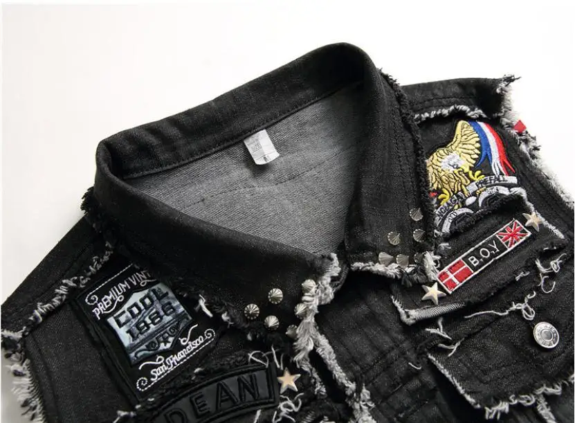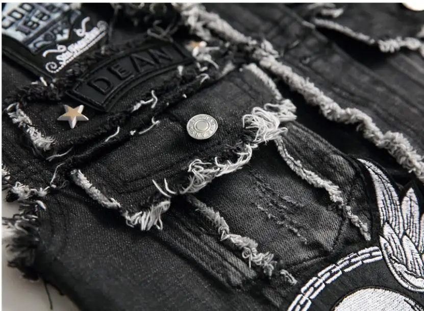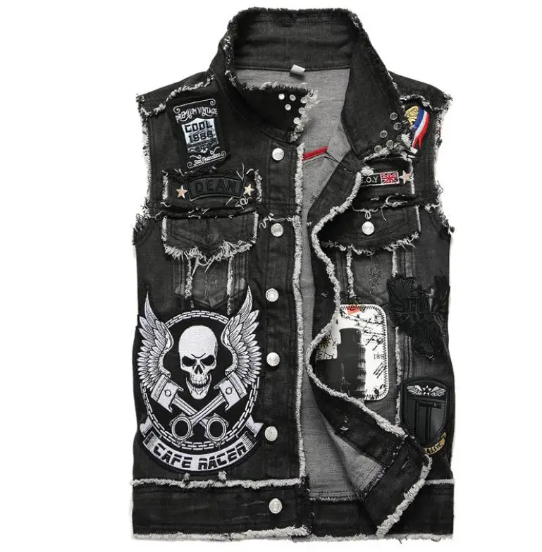 Мужская джинсовая безрукавка с вышивкой черепа, черная Облегающая джинсовая безрукавка в стиле панк, модель J2868, 2022