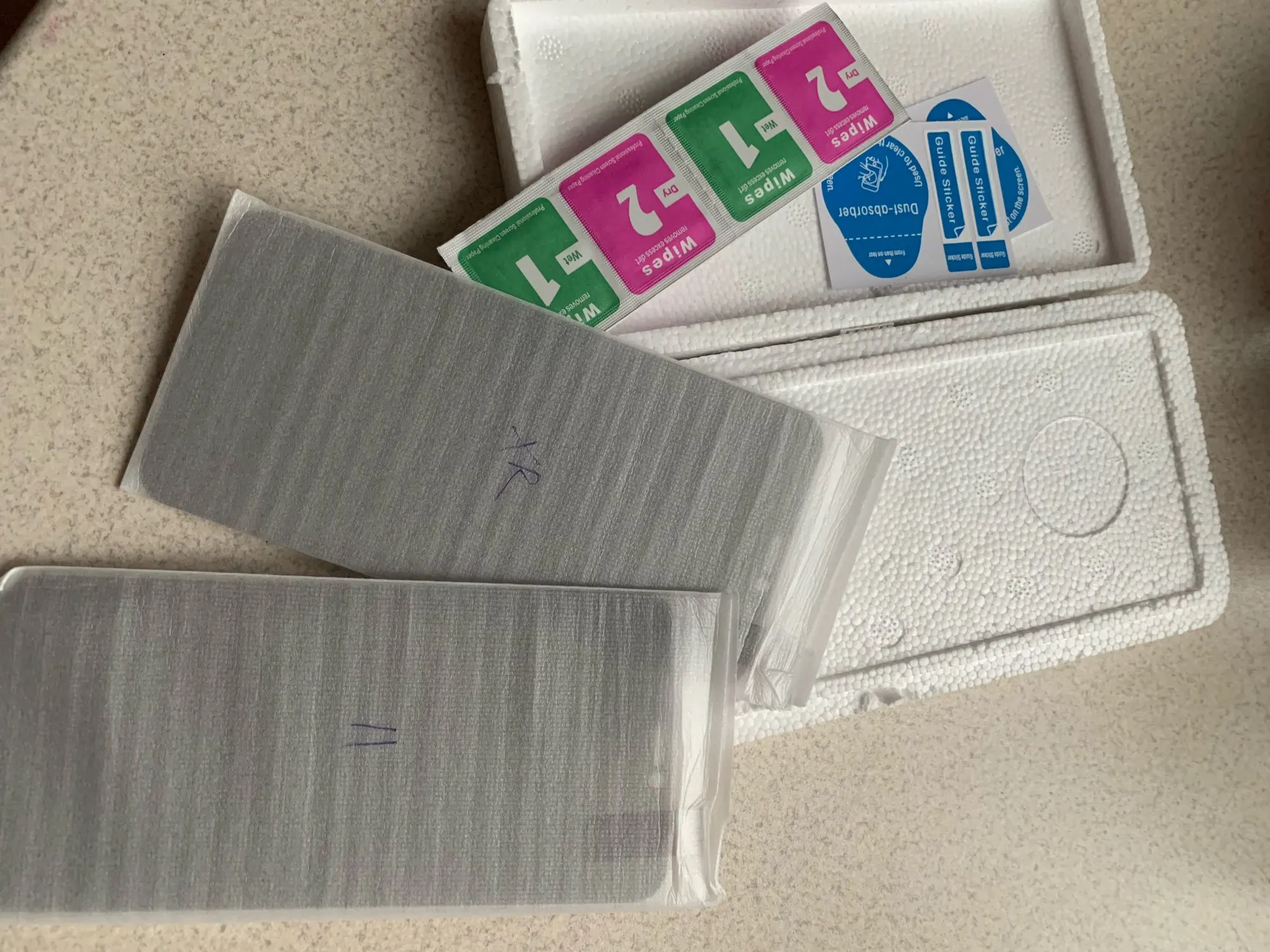 Хорошо упакованы. Быстрая доставка. Поставляется с очищающим материалом для экрана и ссылкой. Это на китайском, поэтому я не понимаю