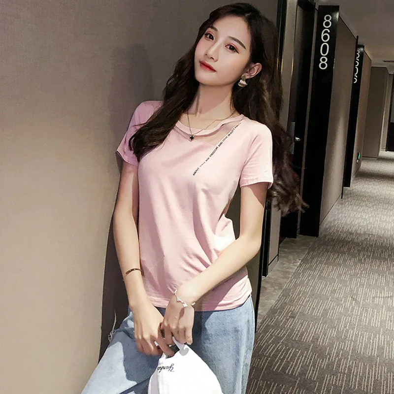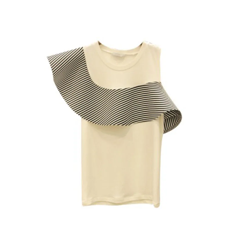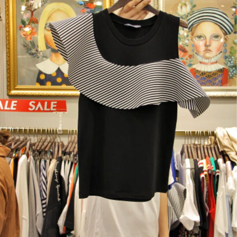 Летняя женская футболка с оборками на плечах, с круглым вырезом