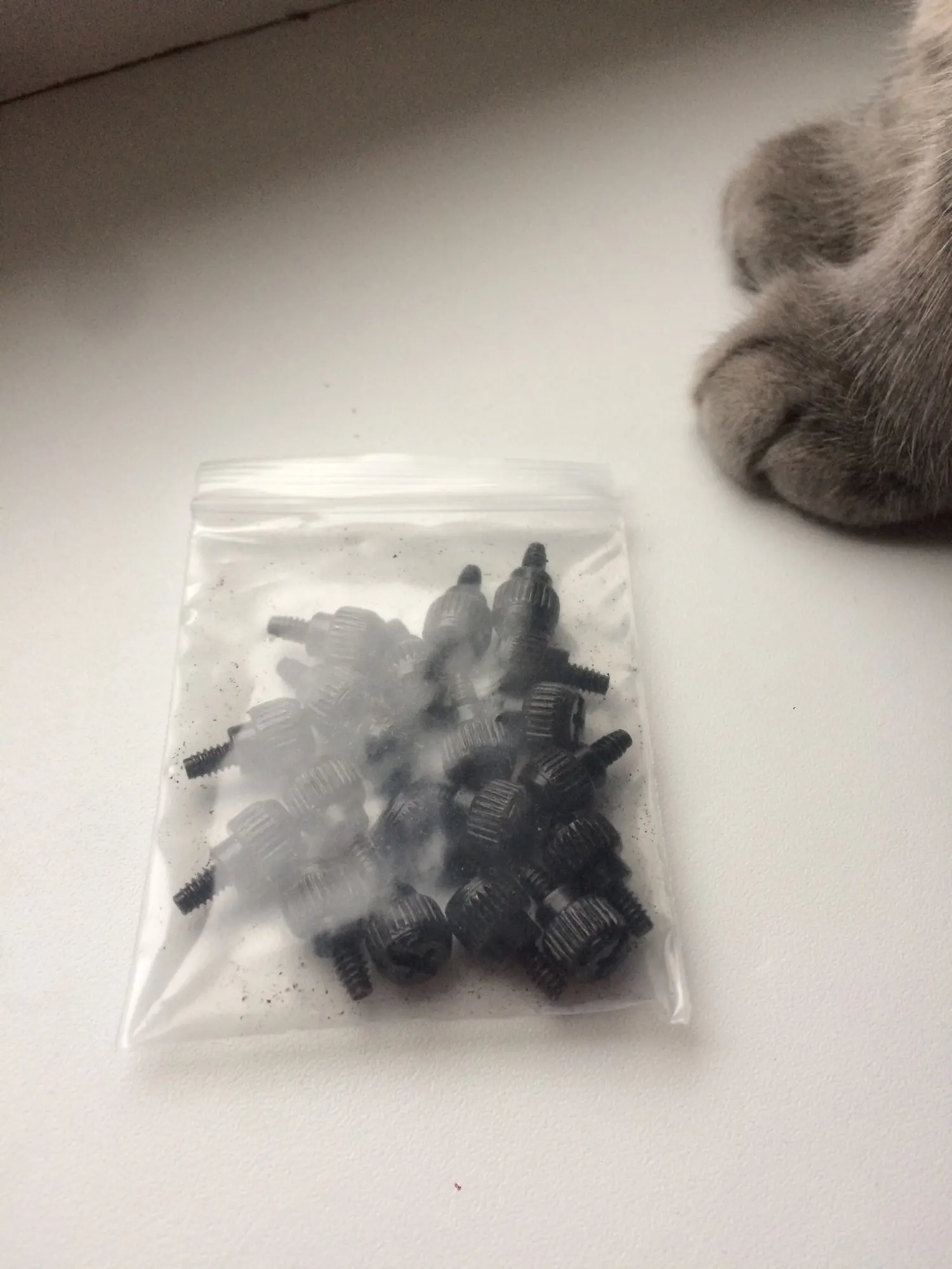 Винты отлично подошли к корпусу по резьбе. Теперь не проблема снять крышку без отвёртки, то что надо. Рекомендую к покупке.