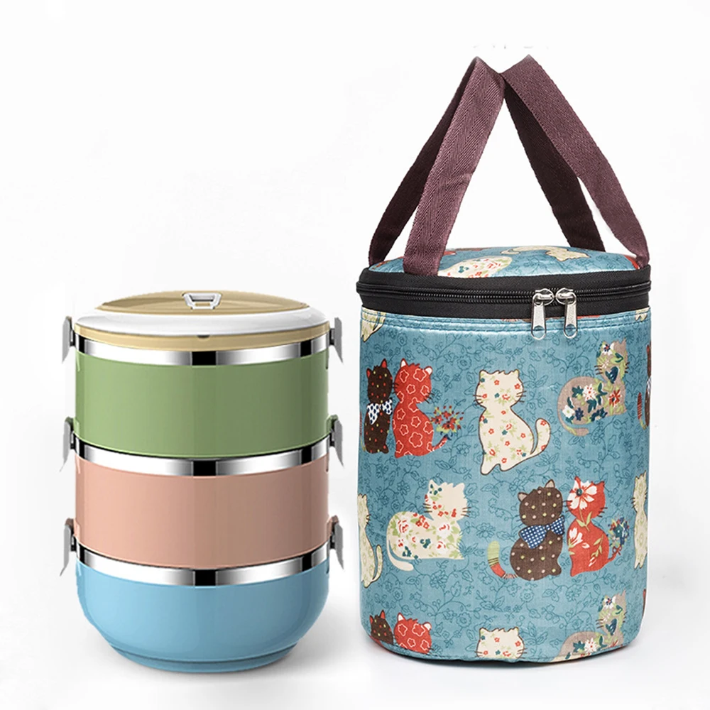Новая цилиндрическая сумка для обеда, теплоизоляционная сумка, переносная сумка для ланчбокса, водонепроницаемая сумка для хранения еды, сумка-холодильник