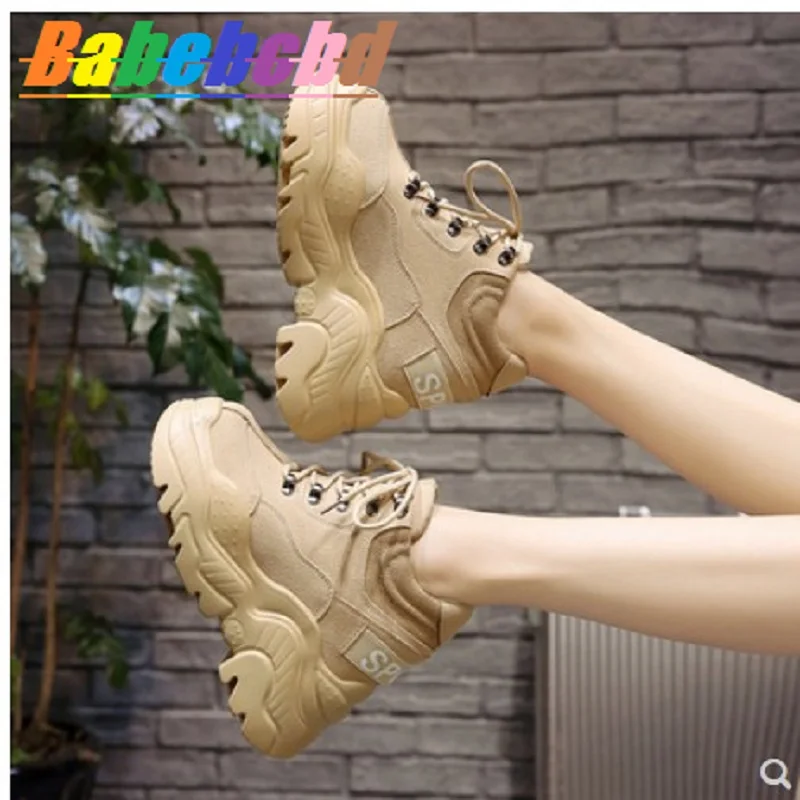 Женские туфли на платформе 12 см, универсальные кроссовки с высокой танкеткой, весна-осень 2019