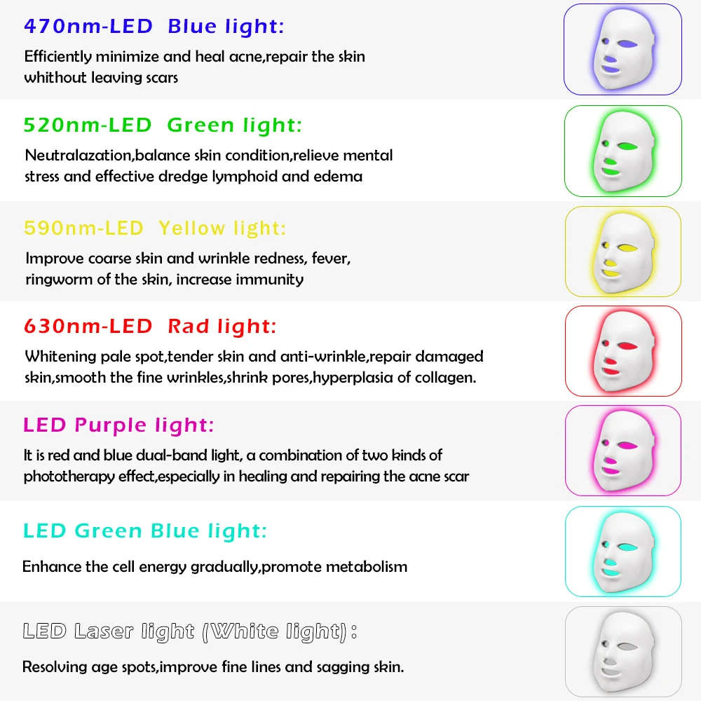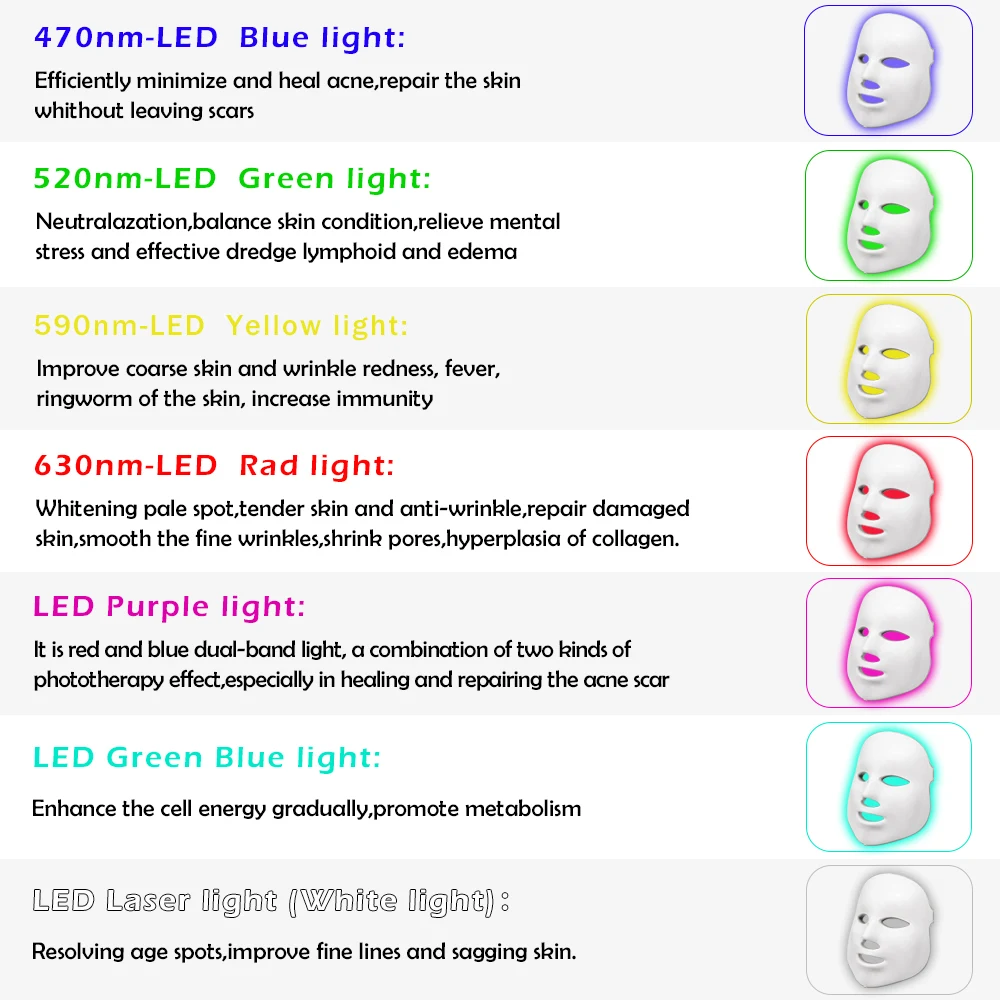 7 видов цветов Светодиодная маска может решить проблемы с кожей: