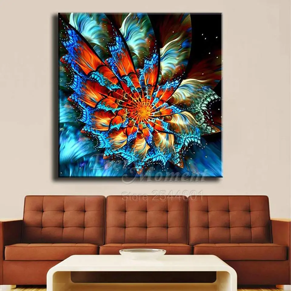 Картина с бриллиантами Ever Moment, оранжевая, синяя, Цветочная звезда, полное квадратное сверло, украшение на стену, вышивка крестиком, алмазная вышивка ASF1612