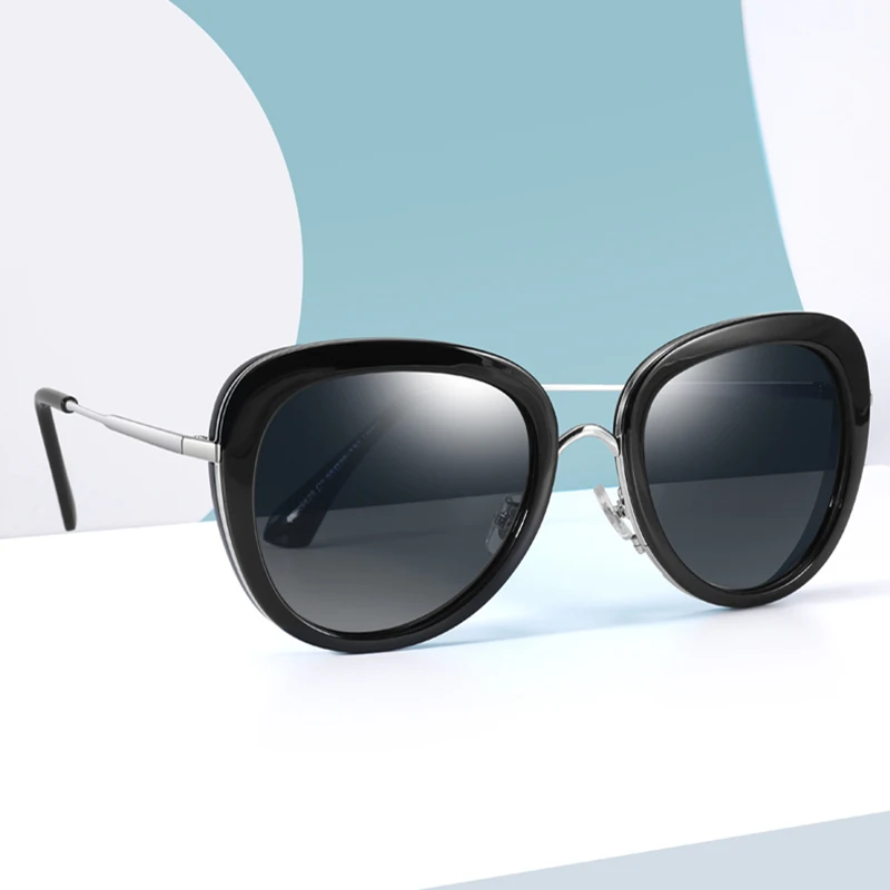 Поляризованные солнцезащитные очки женщин PARZIN, Summer TR90 Ретро солнцезащитные очки Women Retro Женские очки Women Tone Black