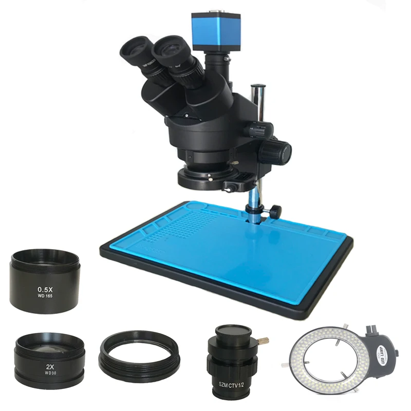 Тринокулярный микроскоп с увеличением 7X-45X, с сильным фокусным расстоянием, 13 МП, VGA, HDMI, светодиодной подсветкой, для ремонта телефонов