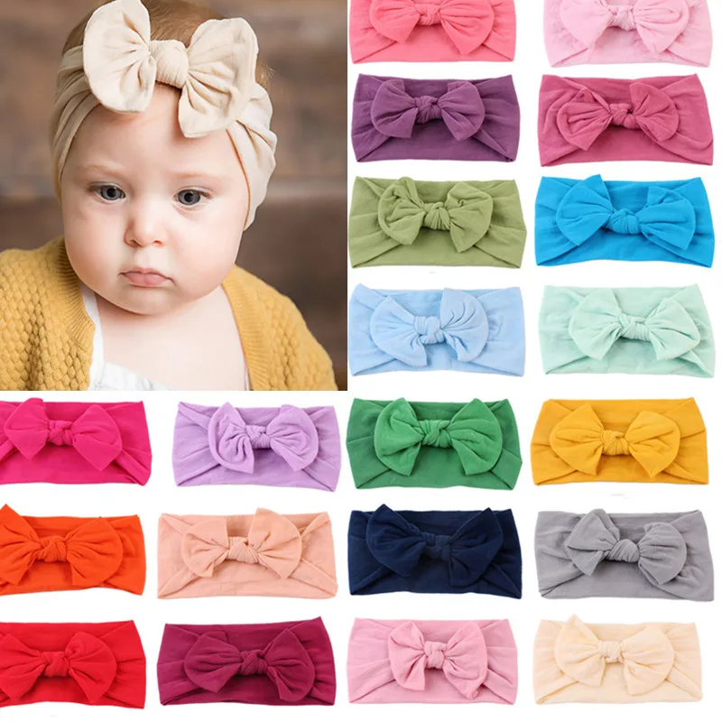 Новая нейлоновая лента для волос 21 цвета с небольшим бантом, нейлоновая повязка на голову.