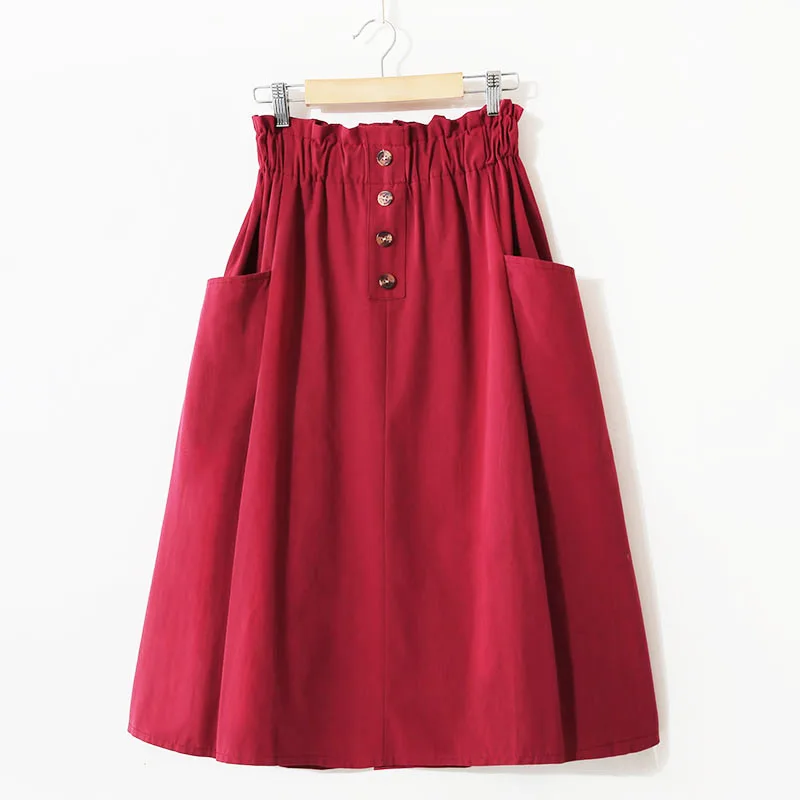 Obrix Casual Style Female Formal A-Line Skirt Pleated Pockets Buttons High Waist Streetwear Everyday Skirt For Work