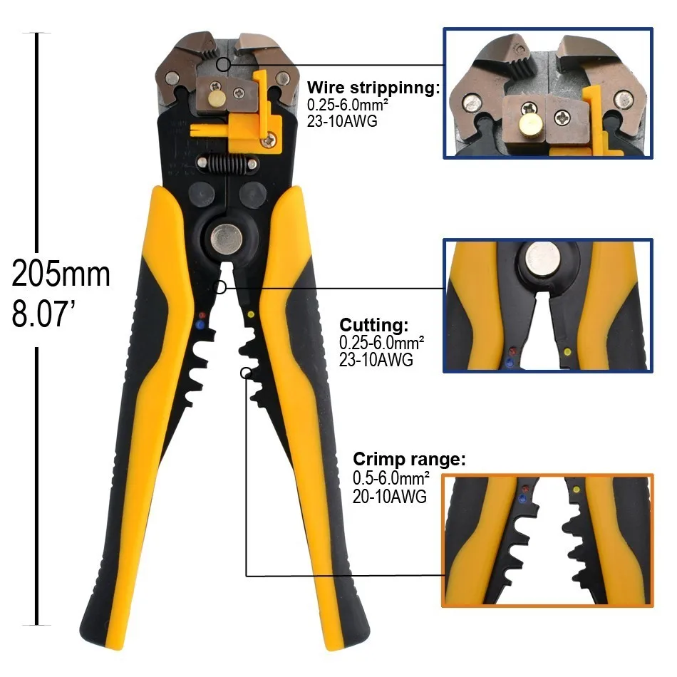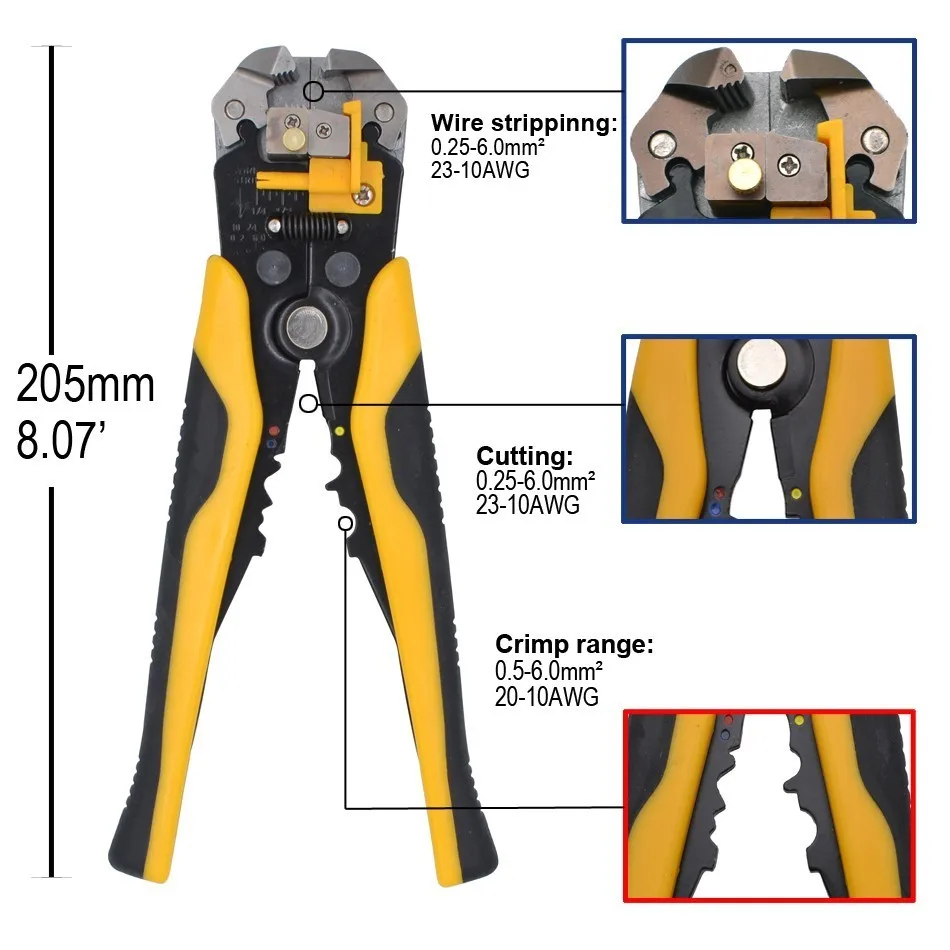 Плоскогубцы для зачистки, автоматические ножницы для резки кабеля 0,25-6 мм, инструмент для зачистки проводов, высокоточный инструмент для обжима