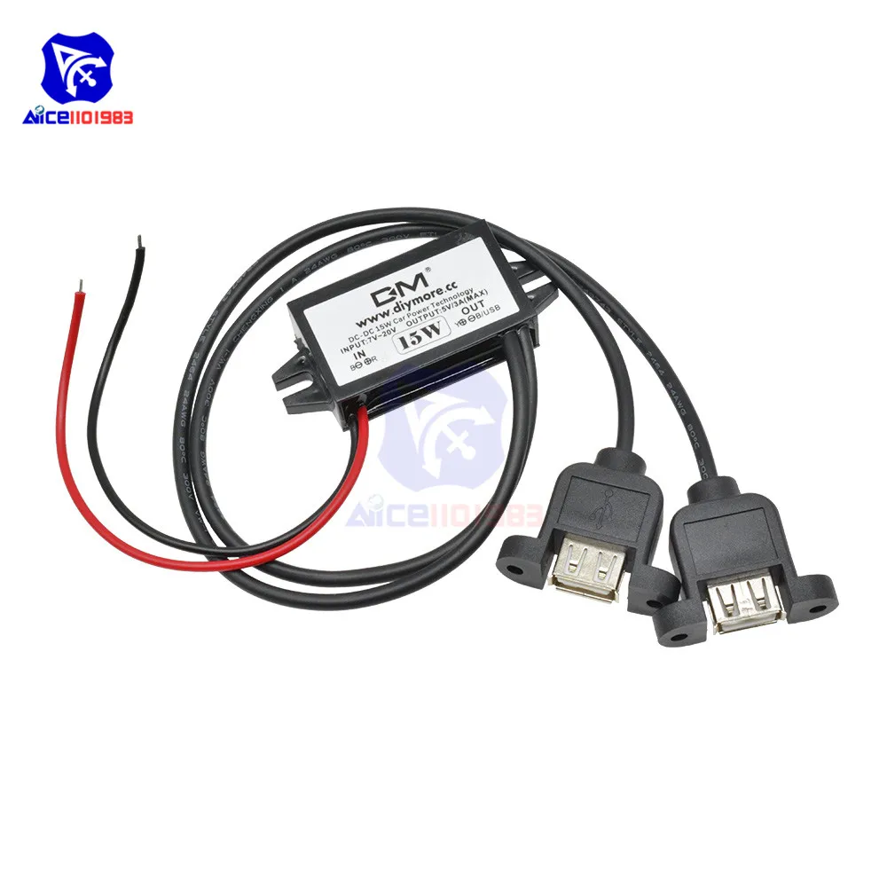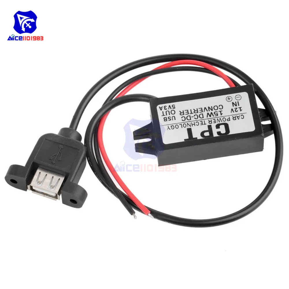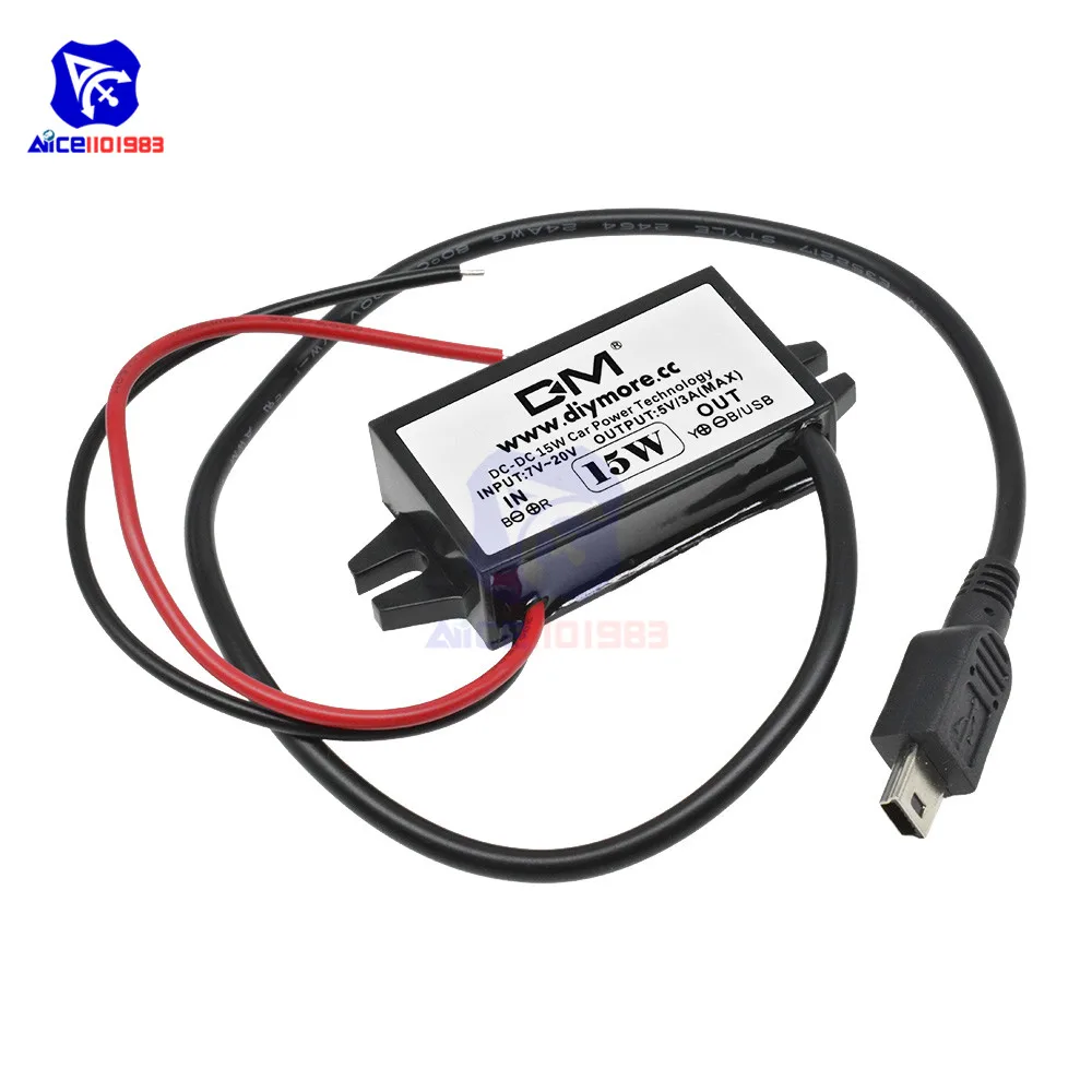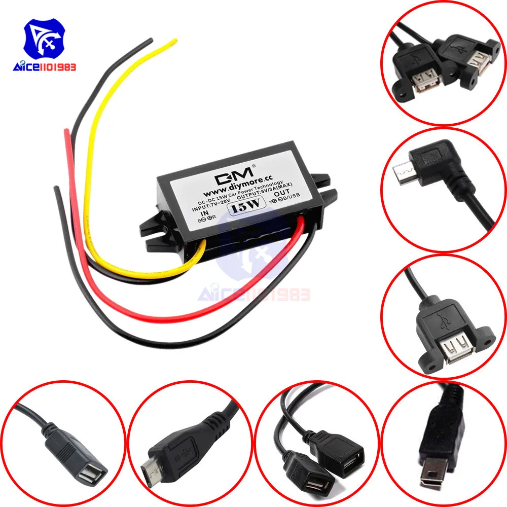 Понижающий преобразователь питания diymore DC-DC, 12 В до 5 В, 3 А, 15 Вт, для автомобиля, штекер, гнездо, USB, мини-USB, адаптер Micro USB