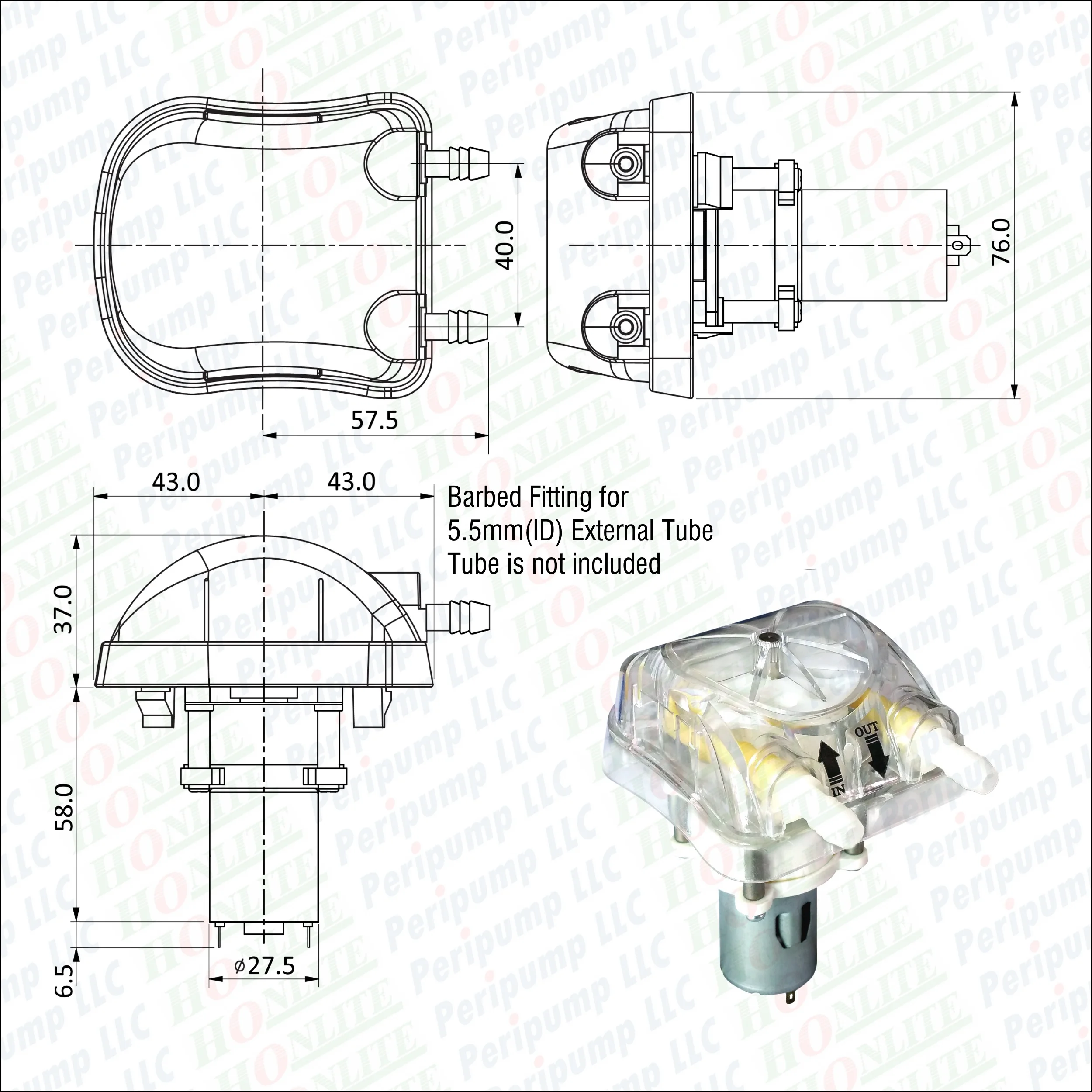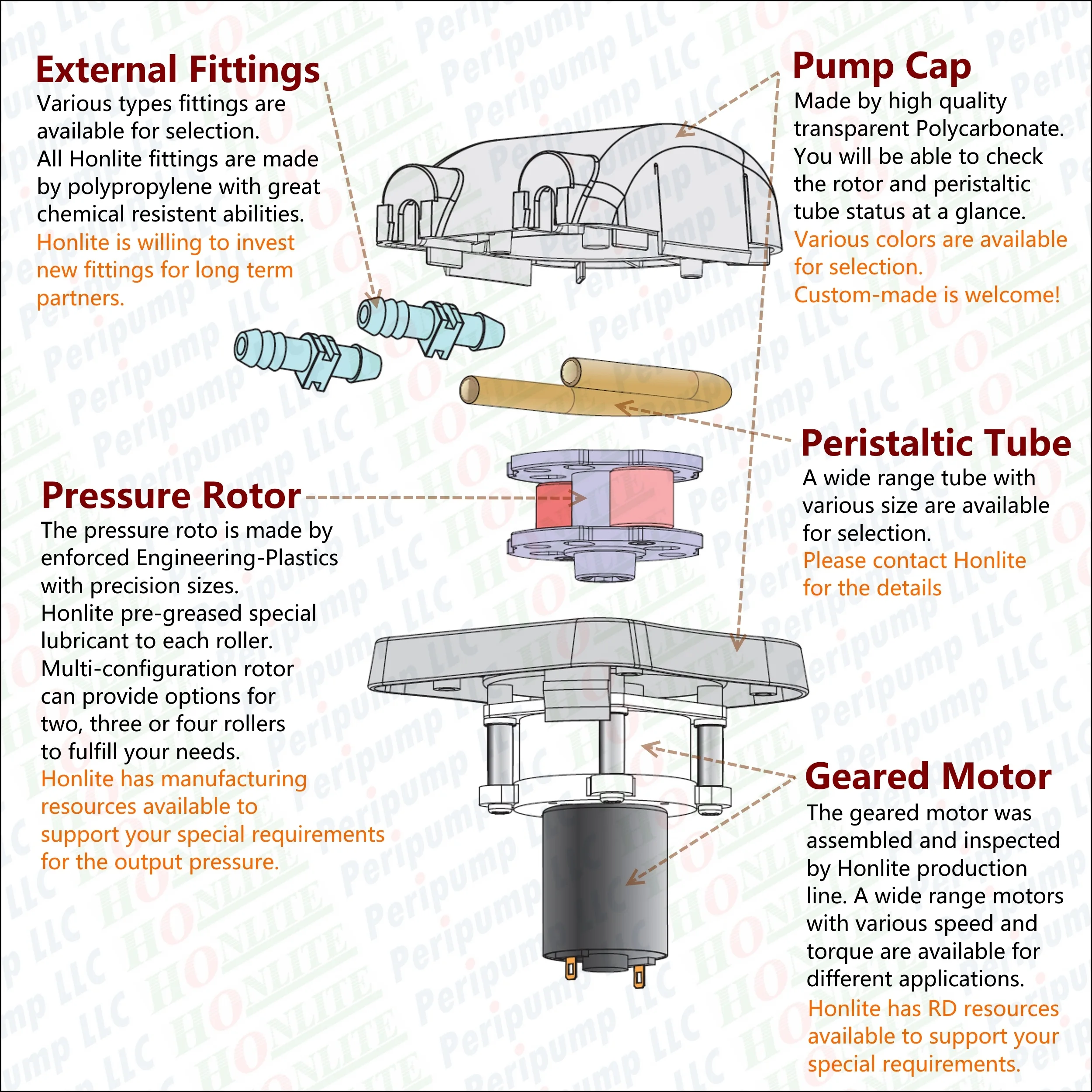 Перистальтический насос Honlite диаметром 500 дюйма, 40 фунтов на кв. дюйм, 24 В постоянного тока с детской и фармацевтической перистальтической трубкой BPT