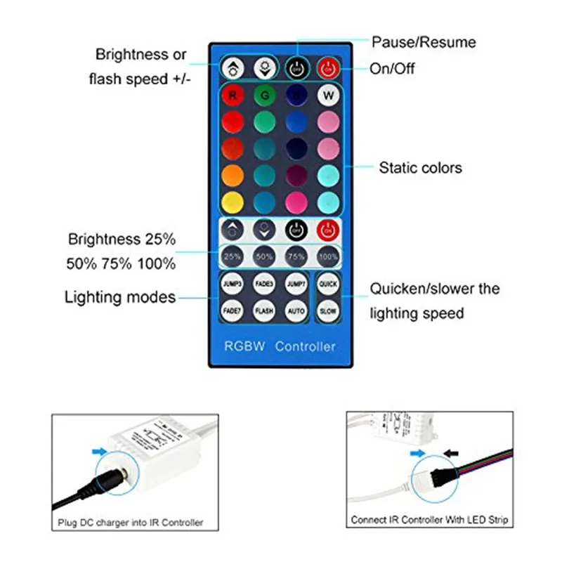 FGHGF 4 Каналы DC 12V - 24V RGBW светодиодный Управление; Диммер 40Key 5Pins ИК-пульт дистанционного управления Управление для SMD 5050 RGBW/RGBWW светодиодный полосы светильник