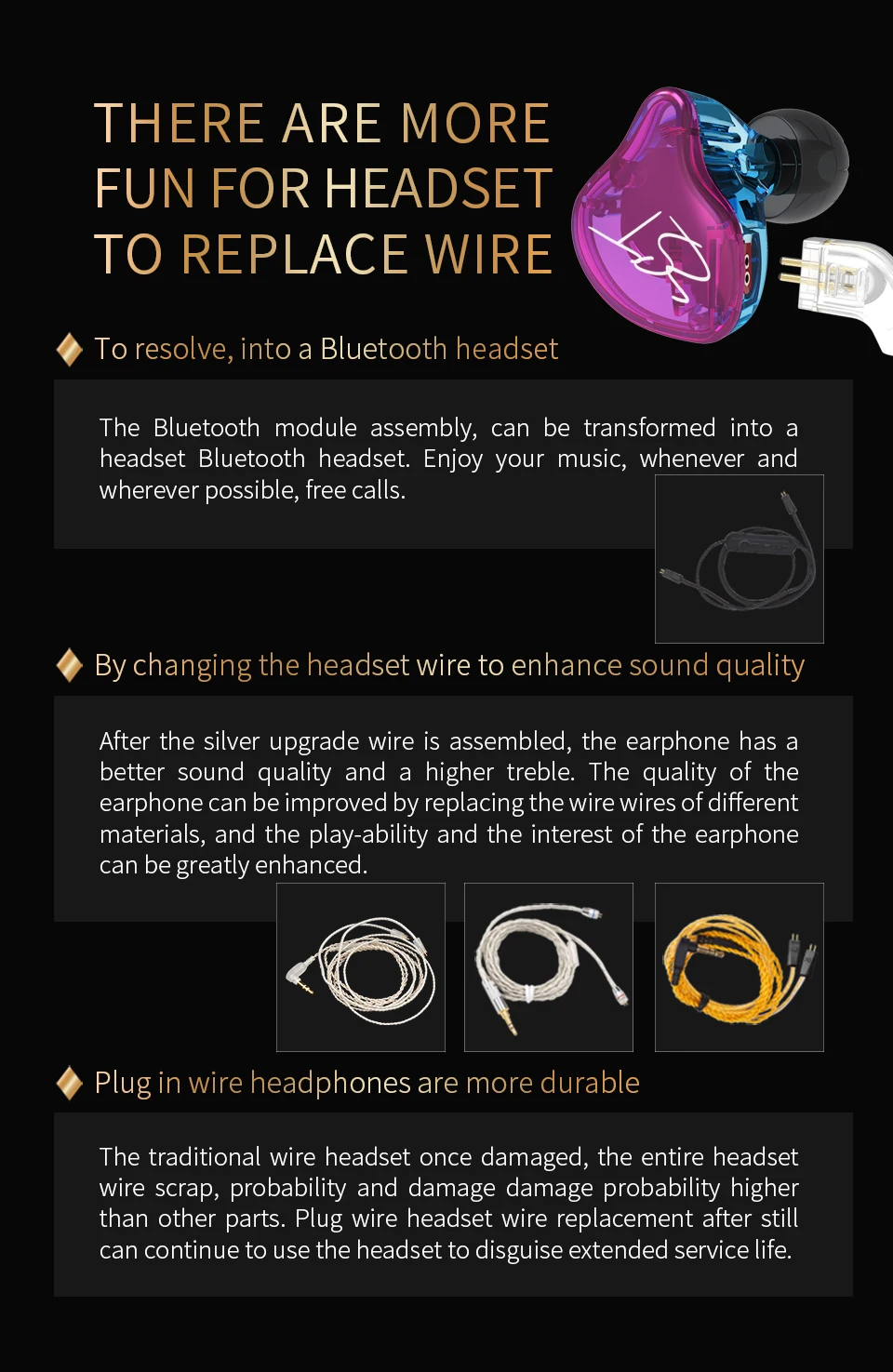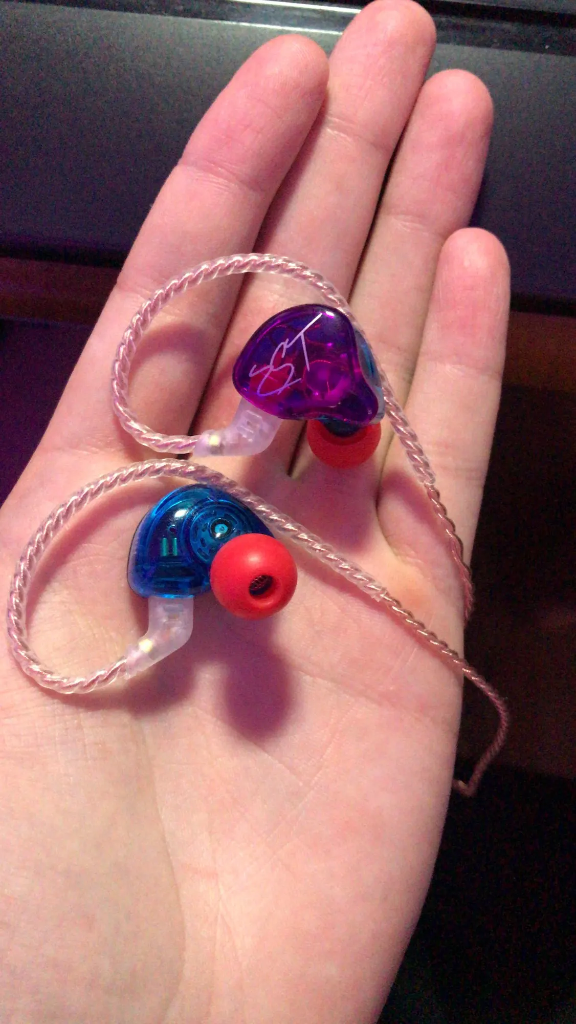 Наушники - огонь! Проволочки мягкие, красивые (год назад заказывал тоже KZ но в другом магазине, там провод был более жёстким, темным, и он стал виться, а тут мягкий шнурок). На вид стильные, звук мне очень нравится, слышно все инструменты.)