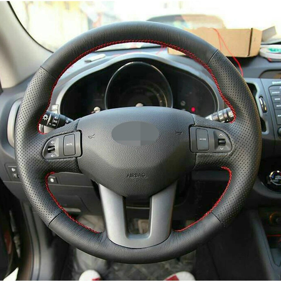 Чехол на руль, прошитый вручную, черный чехол на руль из искусственной кожи для Kia Sportage 3 2011-2014 Kia Ceed 2010