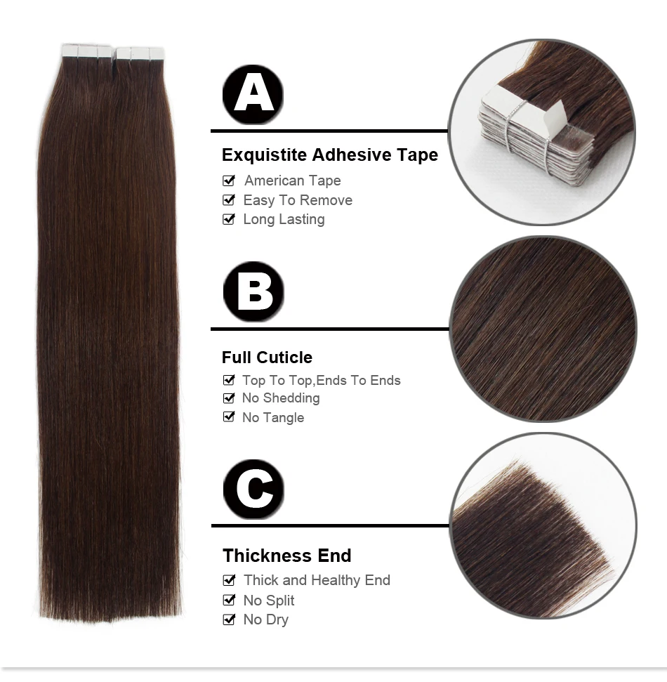 Навсегда волосы на Клейкой Ленте имитирующей кожу клеев, переходящие плавно от темного к светлому) в наращивание волос Двусторонняя 20 "для наращивания с ненарушенным слоем кутикулы ленты ПУ 2 гшт. темно светильник Цвет