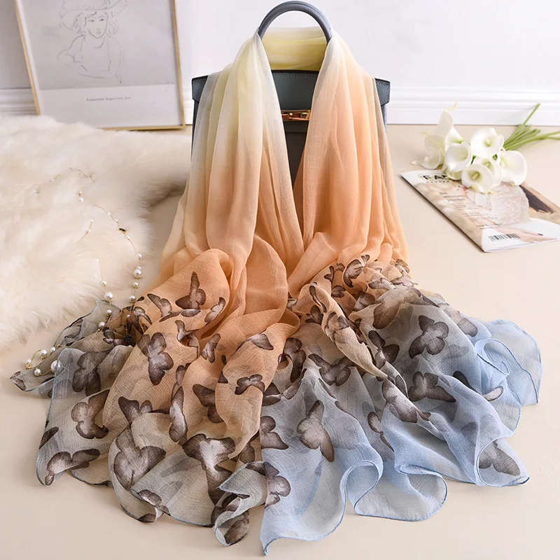 Хиджаб зимние градиентные шарфы женские летние морские...US $7,53
