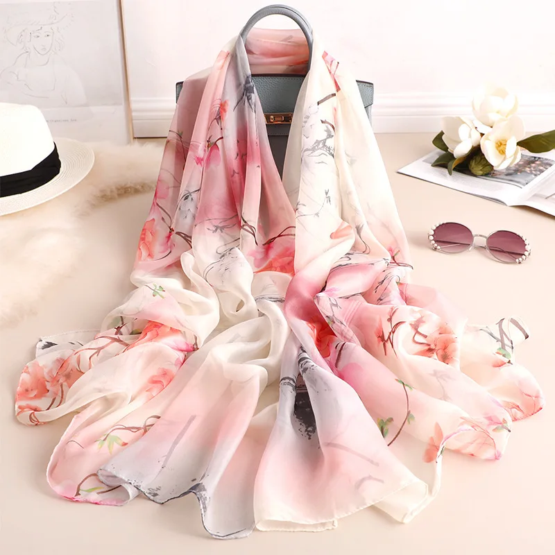 Женский шелковый шарф, модный шарф с принтом, мягкий шарф хиджаб, лето 2019