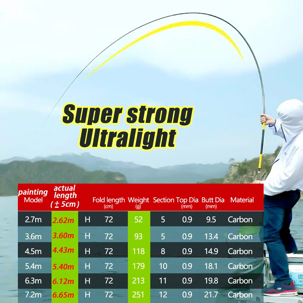 Новинка, сверхлегкая, сверхжесткая, 3,64,55,46,37,2 метров, ручная Удочка из углеродного волокна, телескопические удочки, рыболовные снасти