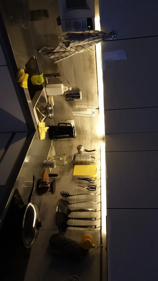 Описание соответствует. Я получила то, что ожидала. Немного расстраивает яркость. На фотке видно, что свет не слепит, но, в целом, приемлемо. Из вещей, которые лучше учитывать, я замучалась клеить эту резиновую ленту к шкафу, никакие известные мне способы не справились. В этого приклеила местной же двусторонней лентой, держится, я все довольна)