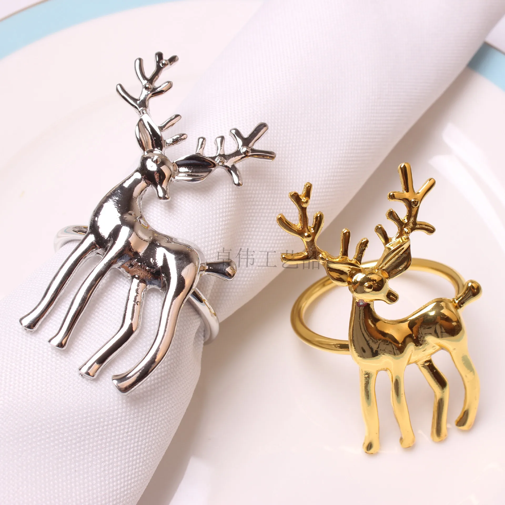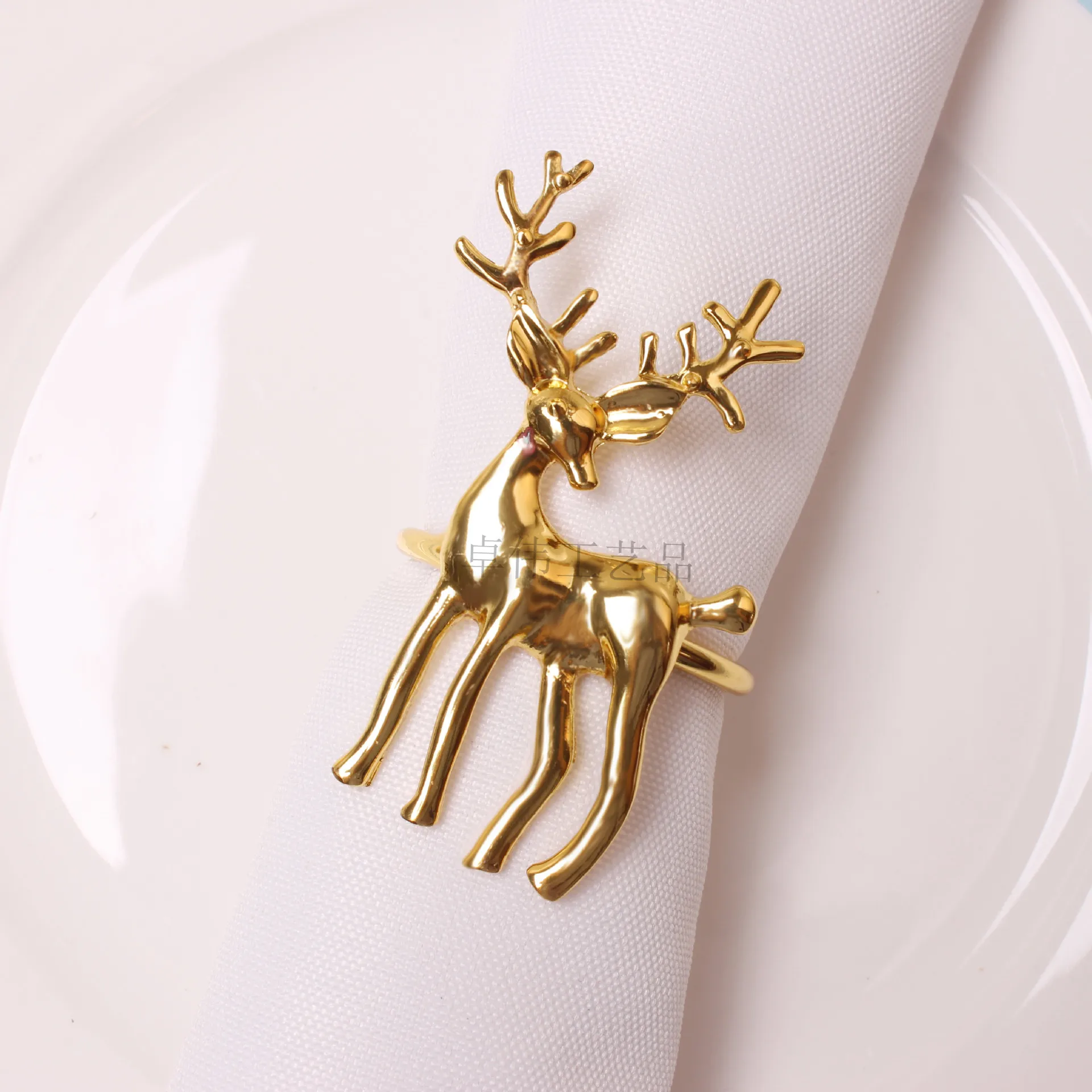 10 шт. Классические рождественские обеденный стол с рисунком лося для литья под давлением полированная салфетки пряжки эко-пятнистого кольцо для салфетки в форме оленя кольцо Бумага полотенце кольцо