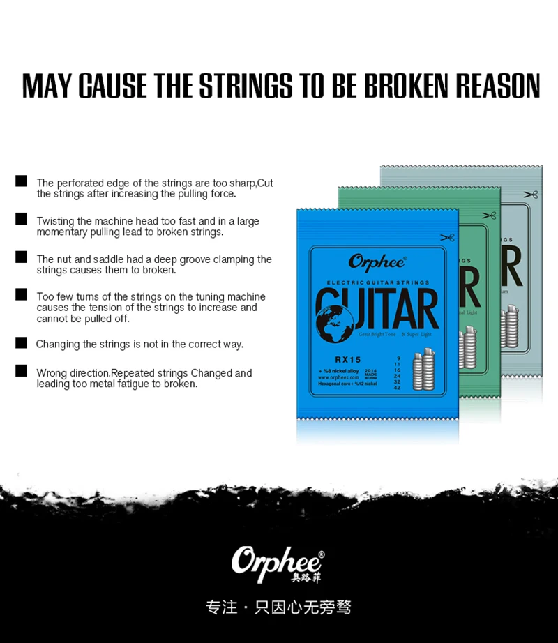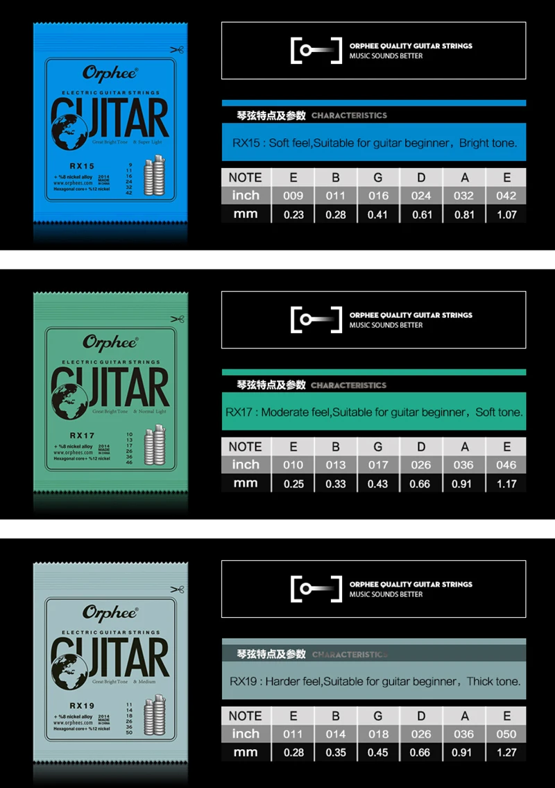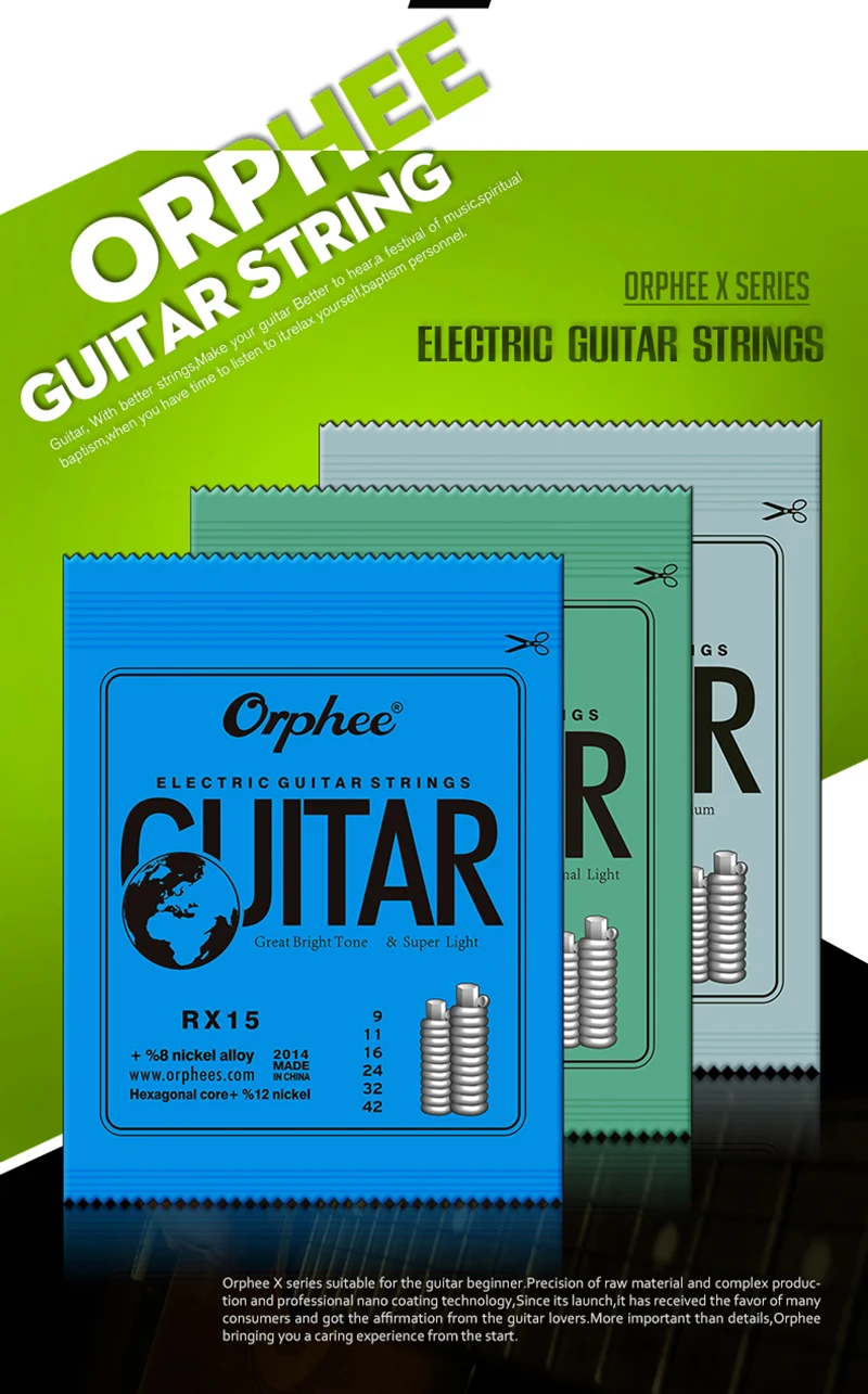 Orphee металлические электрогитарные струны набор RX серии практикованная шестиугольная сталь 6 струн для гитарных деталей музыкальный инструмент