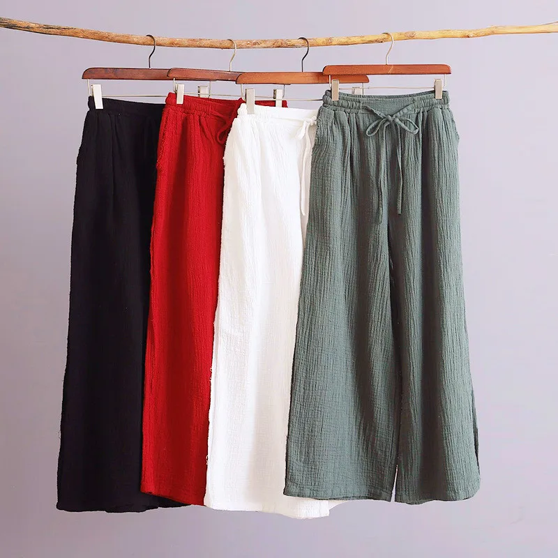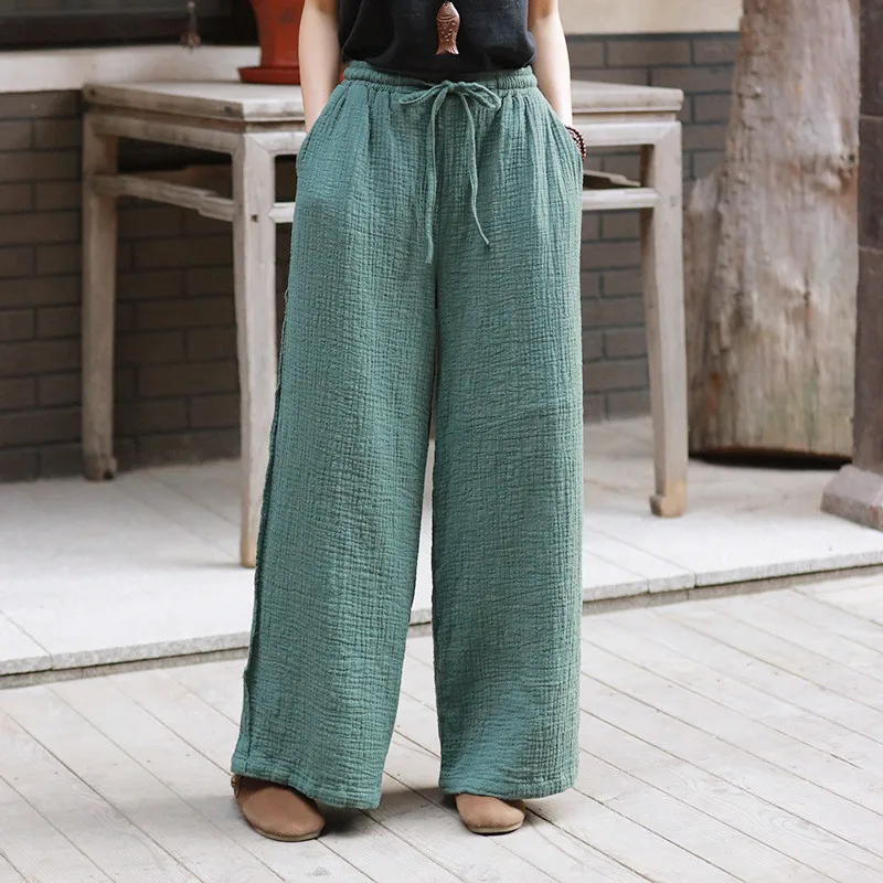 Женские Модные свободные повседневные брюки, удобные винтажные брюки из хлопка и льна, широкие брюки, Новинка лета 2022
