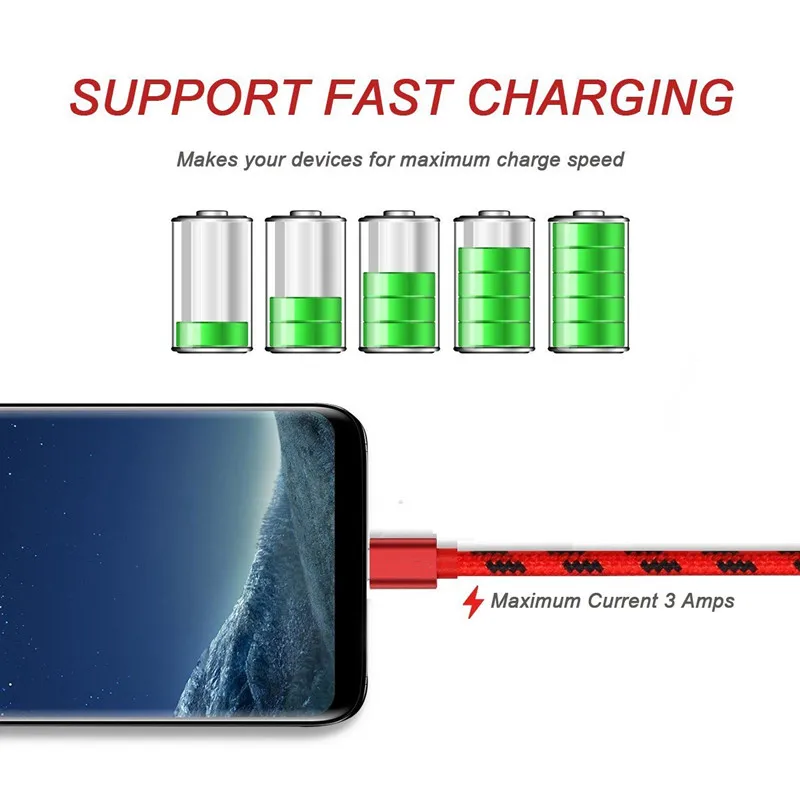 Нейлоновое металлическое быстрое зарядное устройство 2 м, 3 м, USB-...