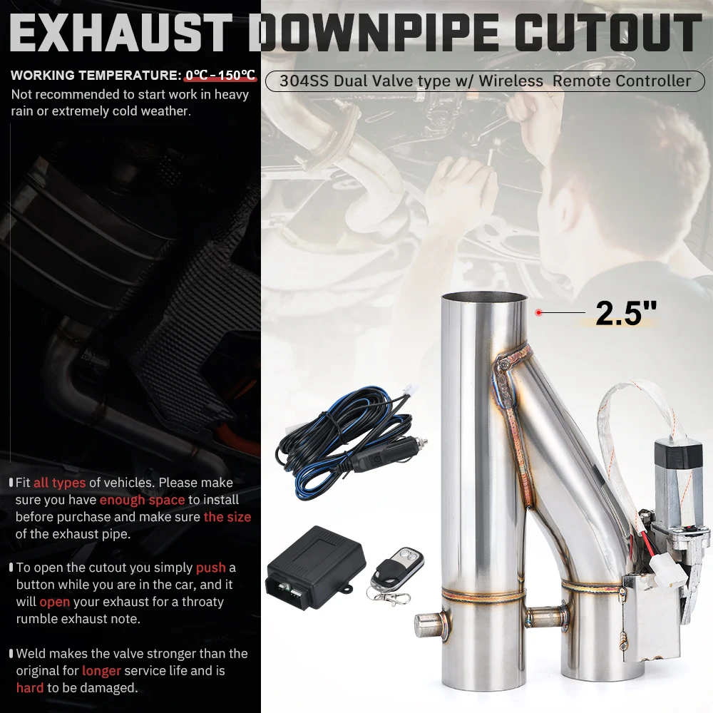 Универсальный 2,5 ''3" двойной клапан электрический выхлоп выхлопа клапан выхлопной трубы глушитель комплект с беспроводным пультом дистанционного управления PQY-EMP86