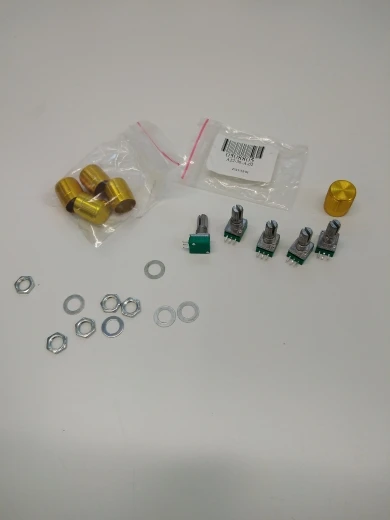 Посылка включает в себя: 5 x поворотный потенциометр с колпачками из алюминиевого сплава