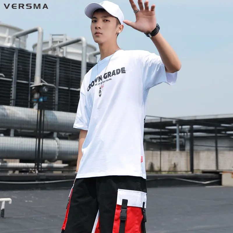 VERSMA 2019 в стиле хип-хоп Уличная одежда с принтом граффити; Swag футболки Для мужчин летний корейский Harajuku Изделие из хлопка с короткими рукавами мужской топ футболки